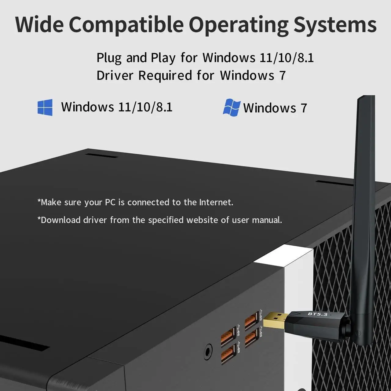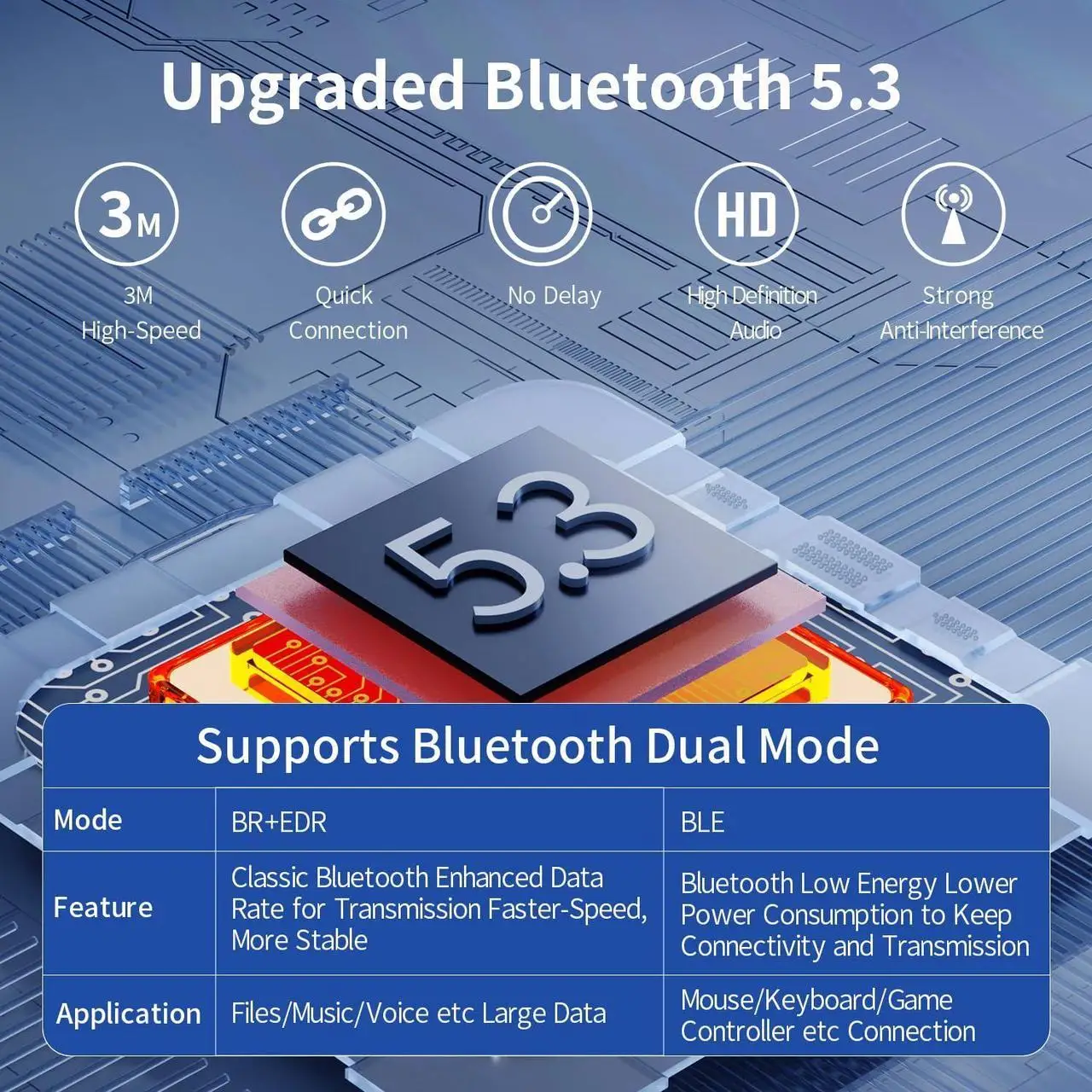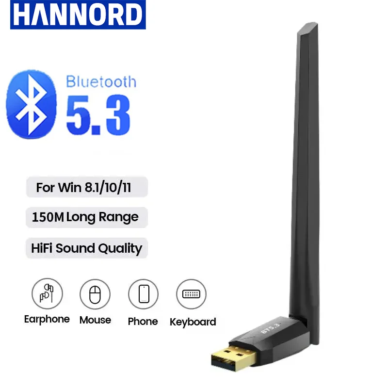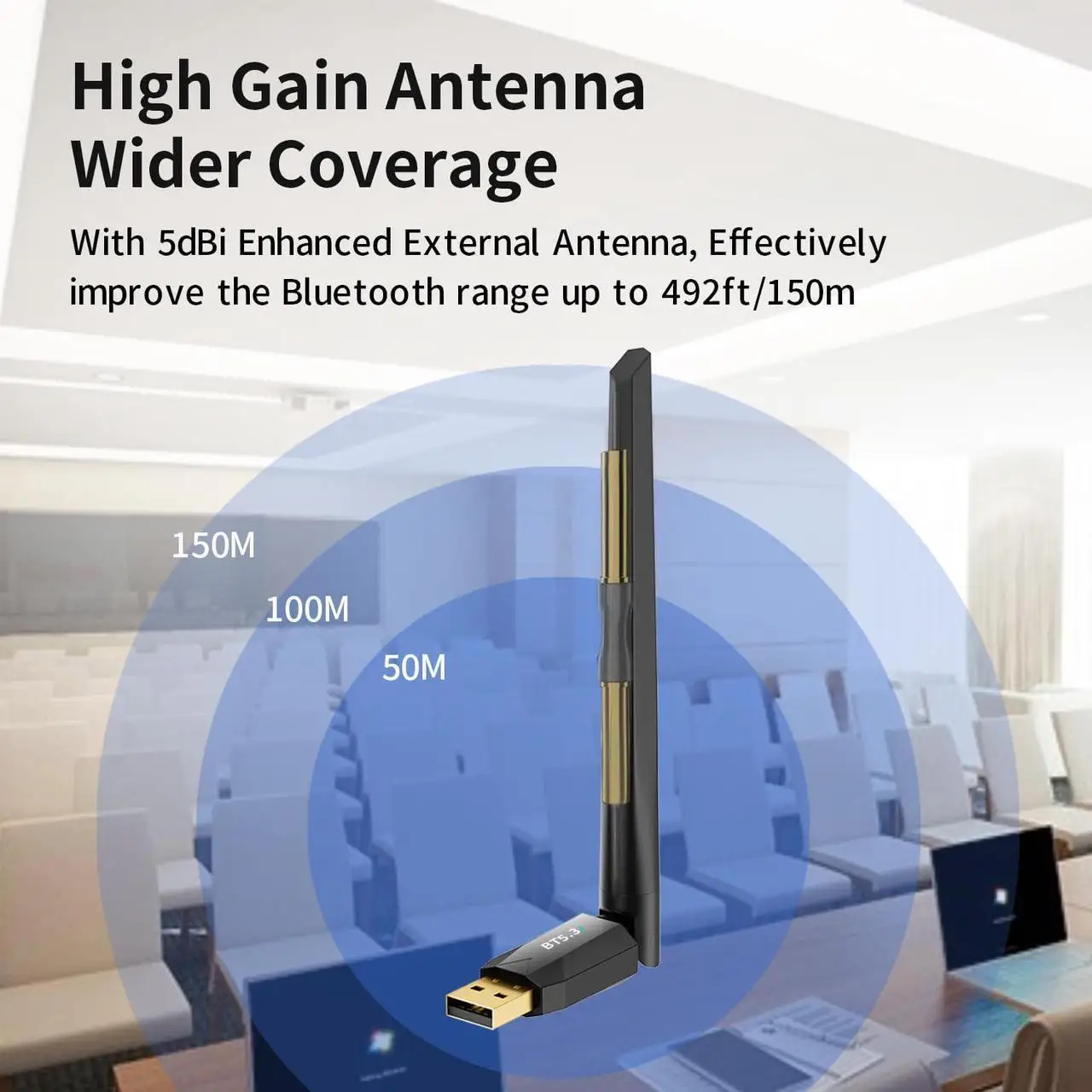 Comprar Adaptador receptor Bluetooth 5,3, receptor de Audio inalámbrico, transmisión de 20m, 150m para altavoz de PC, ratón inalámbrico, teclado, Dongle Bluetooth