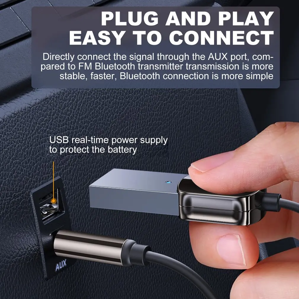 5. Plug and play, conexión simple: este receptor inalámbrico conecta la señal directamente a través del puerto auxiliar, transmisión más estable que el transmisor inalámbrico FM, velocidad más rápida, conexión inalámbrica más fácil.