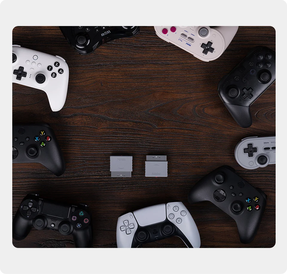 Conéctese no solo con prácticamente todos los controladores 8BitDo Bluetooth® y el Arcade Stick v3, sino que también conéctese de forma inalámbrica con controladores modernos.