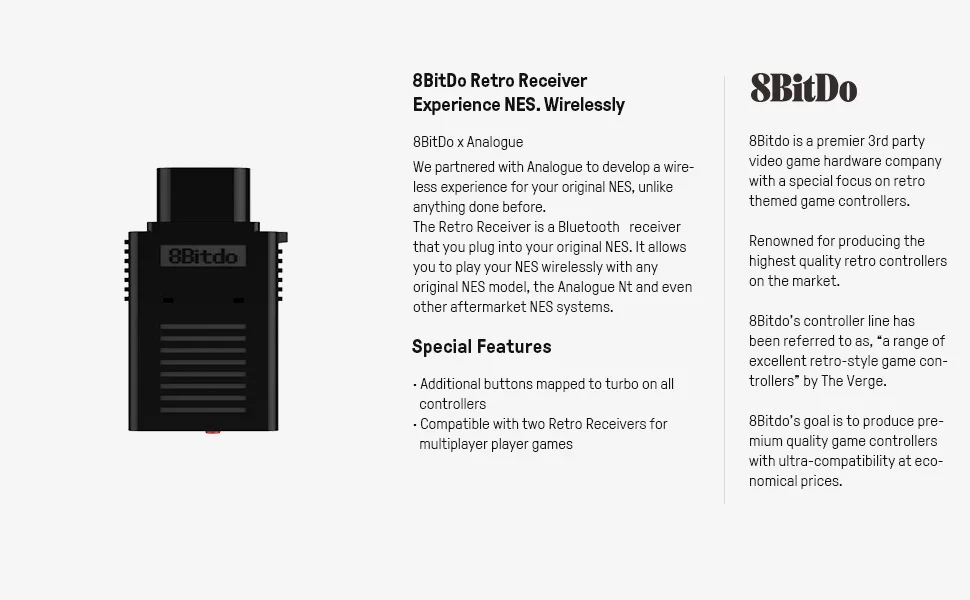 Adaptador receptor Retro Bluetooth 8BitDo, Dongle inalámbrico para consola NES, compatible con PS5, PS4, PS3, Switch Pro, Xbox One, Wiimote
