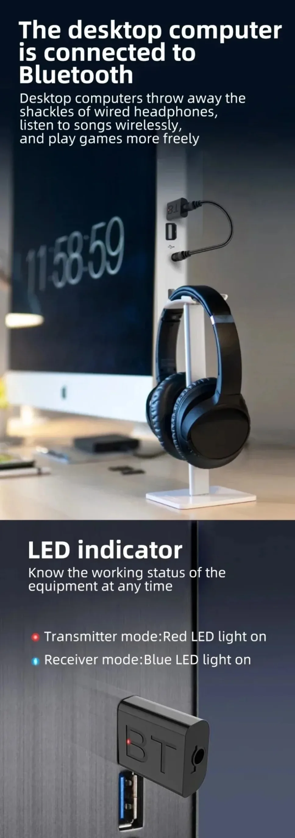 Amplia compatibilidadEste adaptador de transmisor receptor se puede utilizar en su computadora, computadora portátil, sistema estéreo doméstico, auriculares, teléfono inteligente, reproductor de MP3, pérdida de CD, etc.