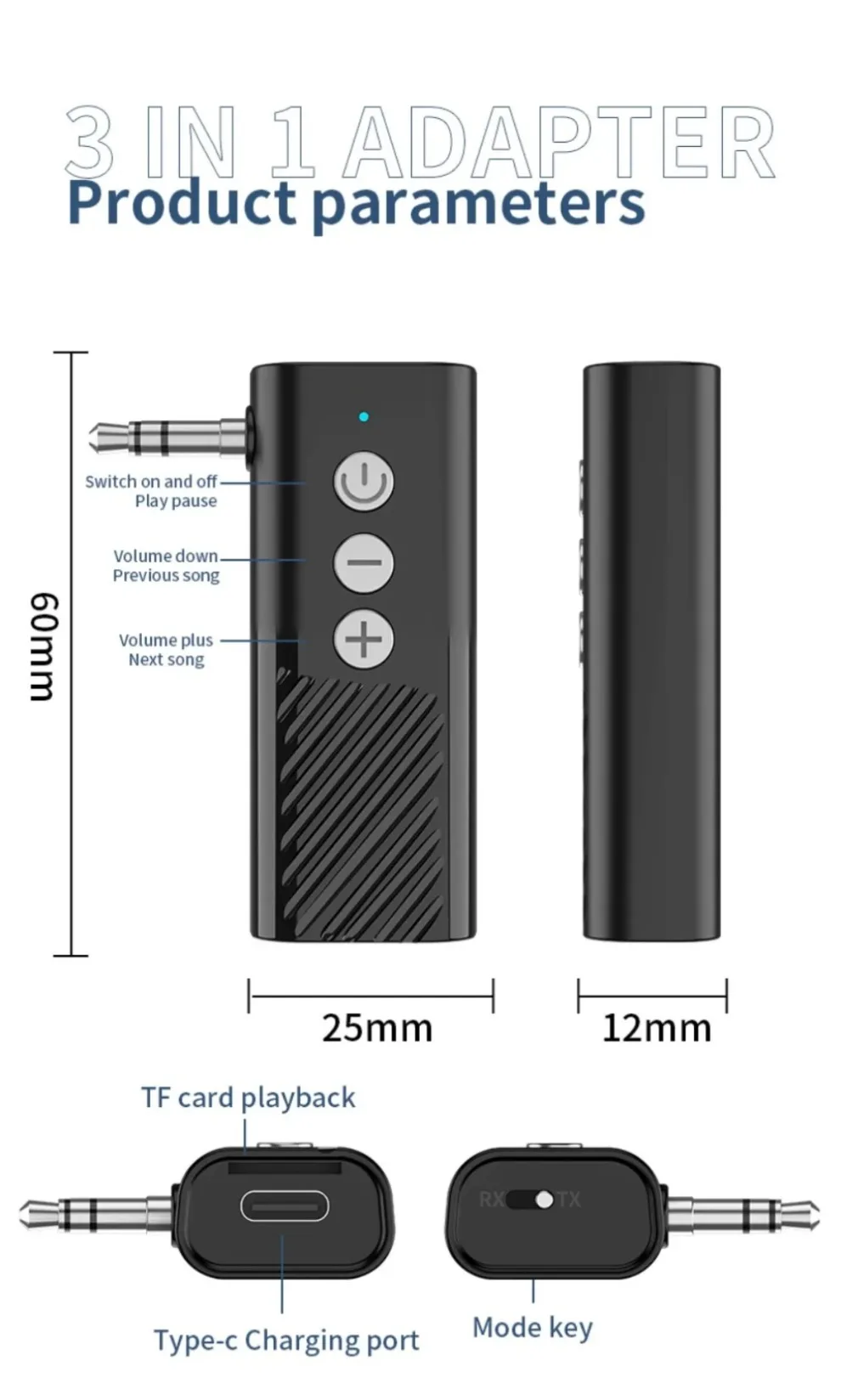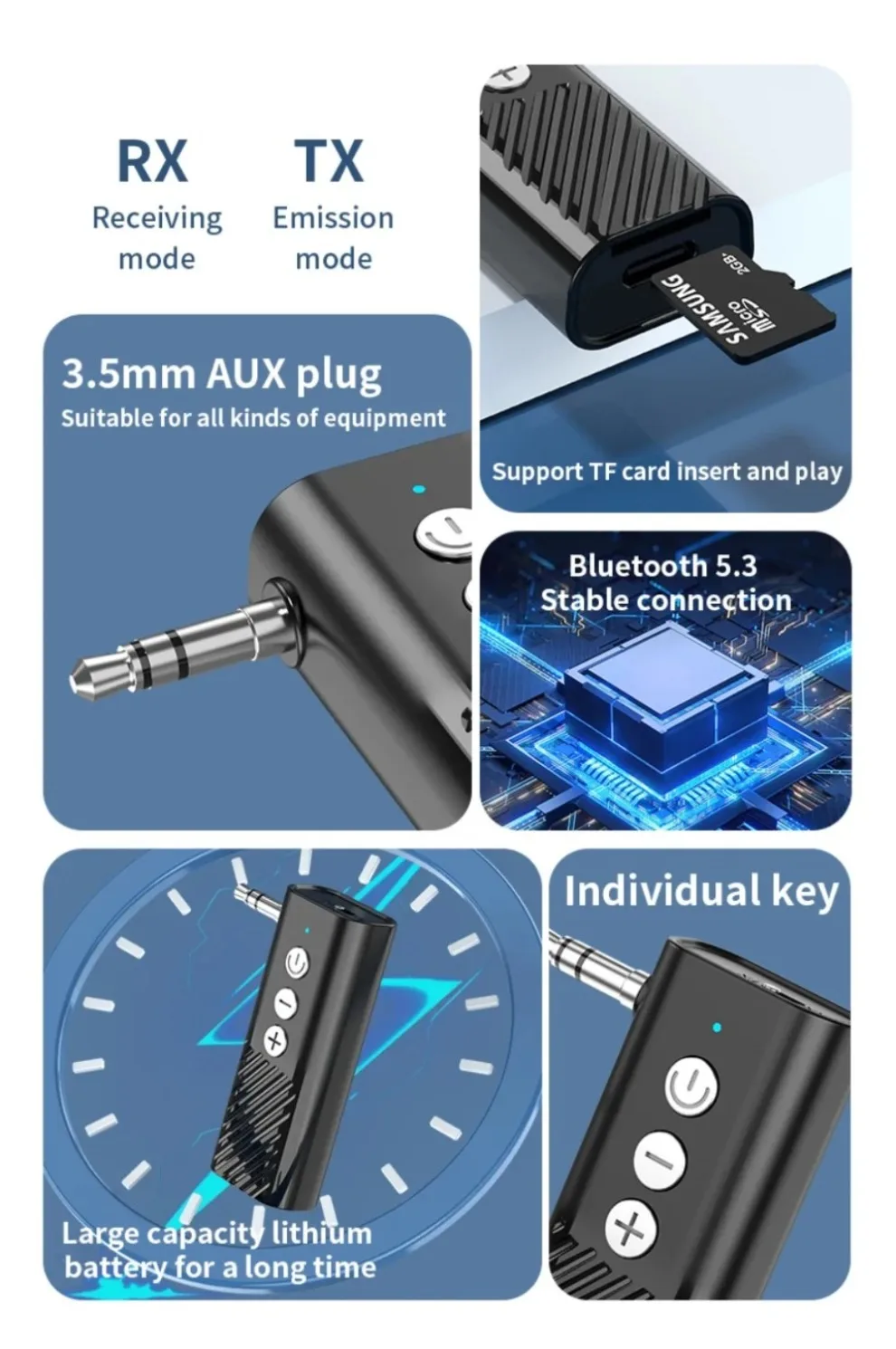 4.Plug and Play: Admite tarjetas TF de hasta 64GB para una reproducción inmediata. El adaptador de audio estéreo también admite Transmisión de navegación en modo receptor y llamadas manos libres, lo que aumenta su comodidad.