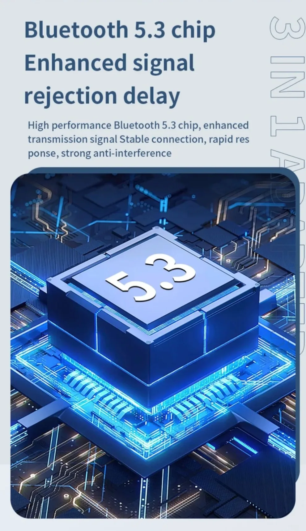Chip 5,3, que mejora la transmisión de la señal, proporcionando una conectividad estable y fluida. Ofrece una respuesta rápida y capacidades antiinterferencias superiores, mejorando su experiencia de audio.