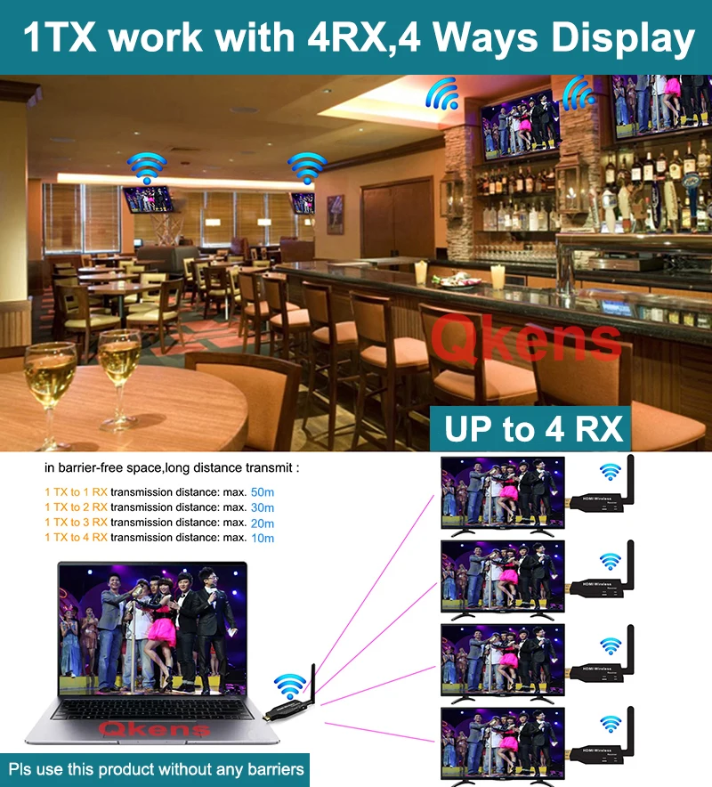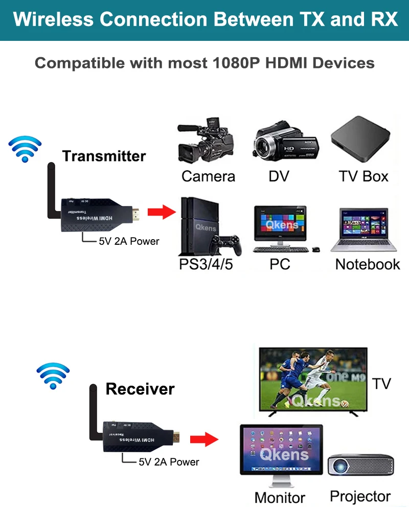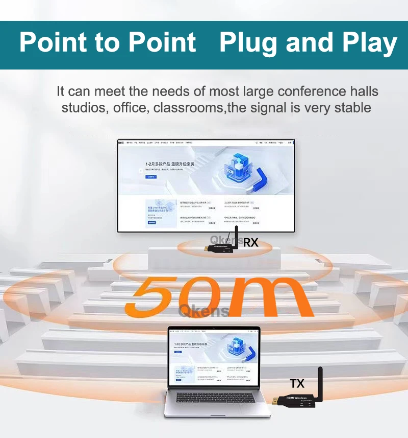 1. Transmisión de video y audio HDMI a través del protocolo de transmisión inalámbrica incorporado, sin necesidad de WiFi o internet