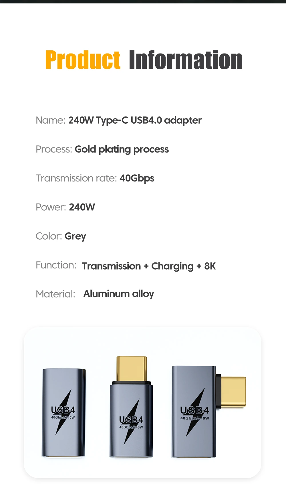 Nombre: Adaptador USB4.0 tipo C de 240 W