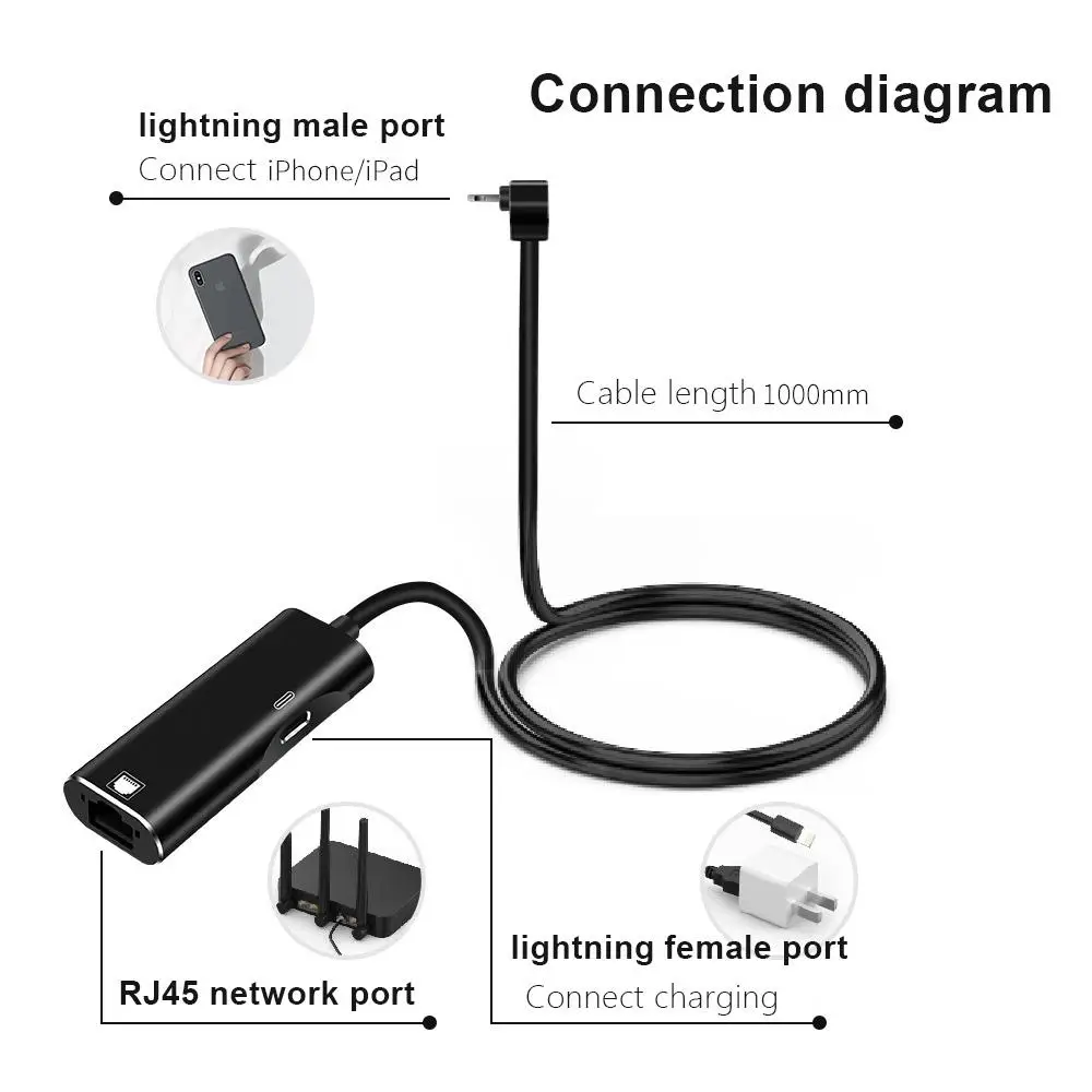 Comprar Adaptador de red Lightning a RJ45, con cable Ethernet LAN de 100Mbps, con carga de fuente de alimentación, para la serie Iphone Ipad