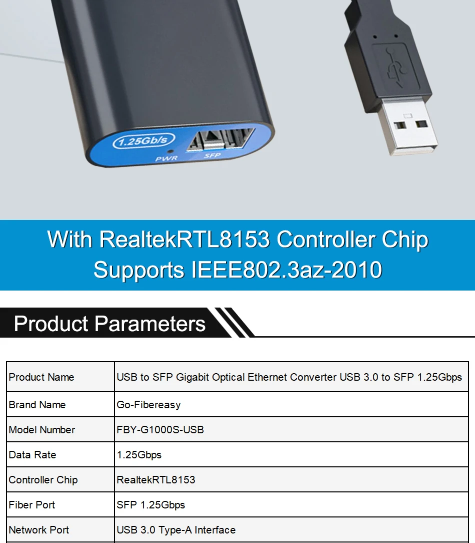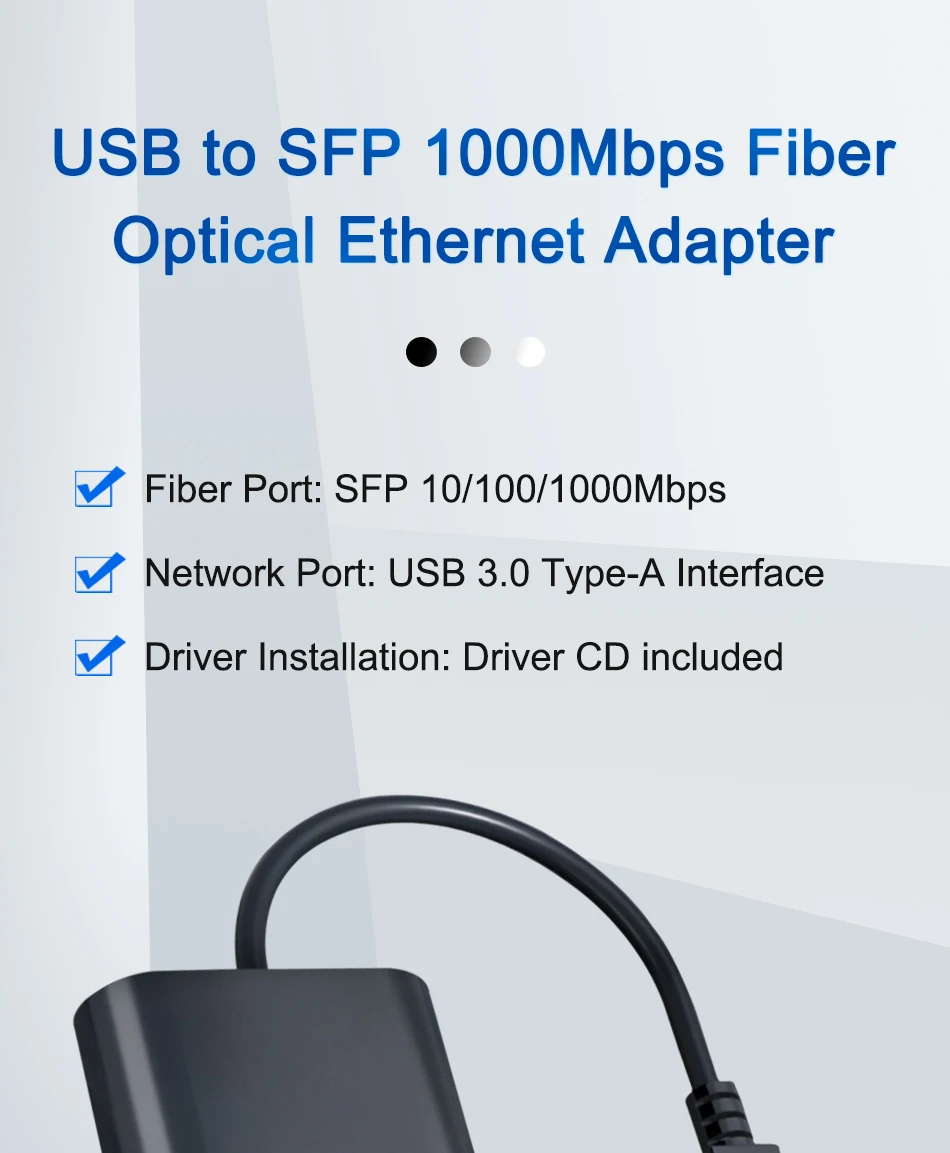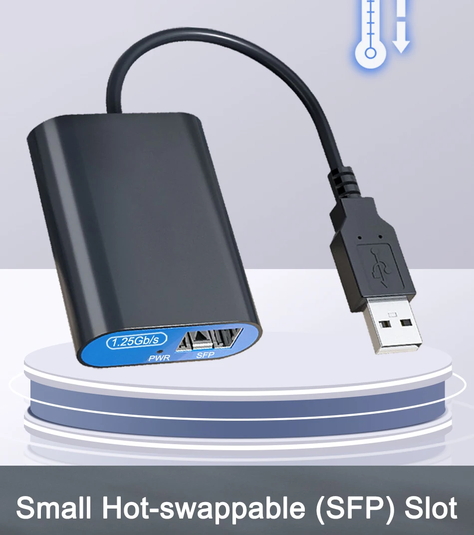 Adaptador de red Ethernet de fibra USB 3.0 a SFP GigabitConvertidor de medios de fibra SFP 10/100/1000Mbps SX/LX SFP Interruptor óptico Realtek RTL8153