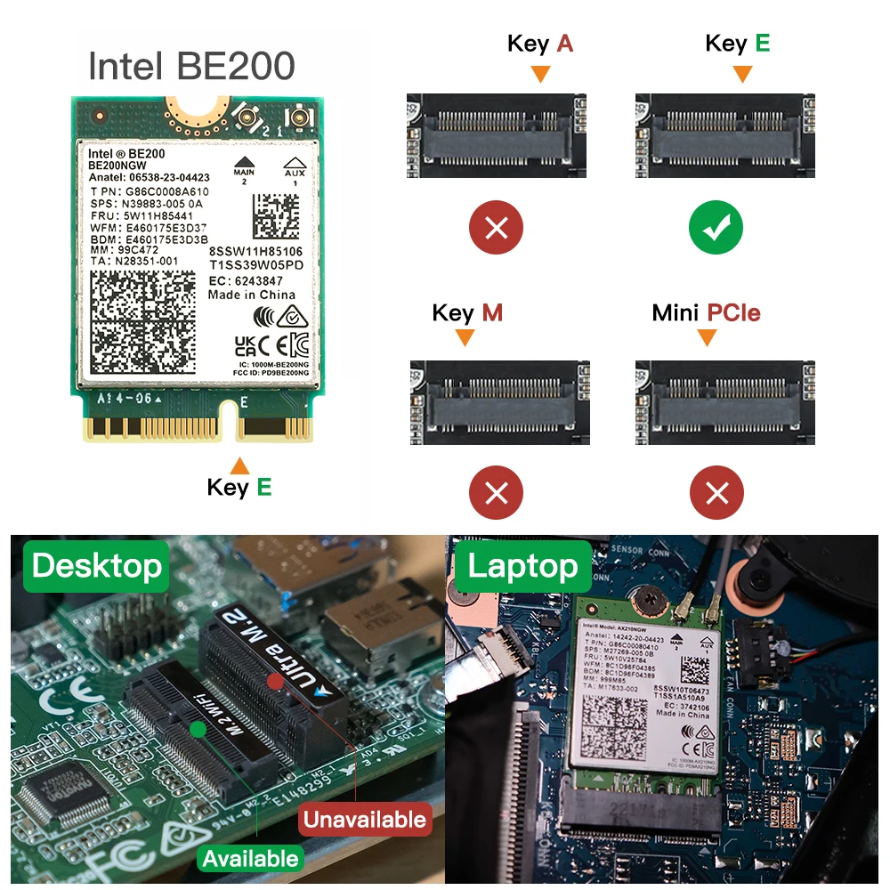 Para tarjeta inalámbrica Intel BE200 Wifi 7 M.2