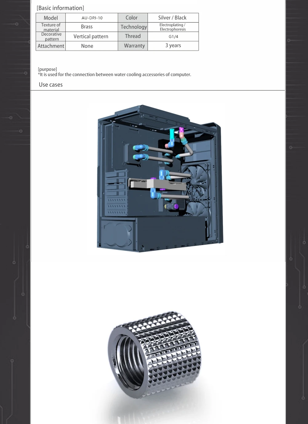 Comprar Adaptador de refrigeración por agua para PC, accesorio extensor de 10mm, G1/4 pulgadas, paso hembra a hembra, patrón de Diamante Negro/plateado, 2 piezas, AU-DPJ-10