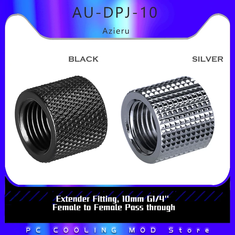 Adaptador de refrigeración por agua para PC, accesorio extensor de 10mm, G1/4 pulgadas, paso hembra a hembra, patrón de Diamante Negro/plateado, 2 piezas, AU-DPJ-10