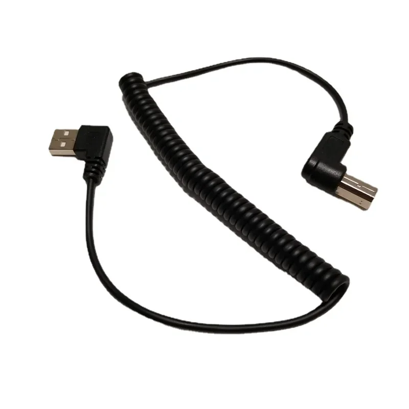 Comprar Adaptador retráctil de ángulo recto de 90 grados, USB tipo A macho a B AM BM, convertidor, Cable de impresora con resorte en espiral