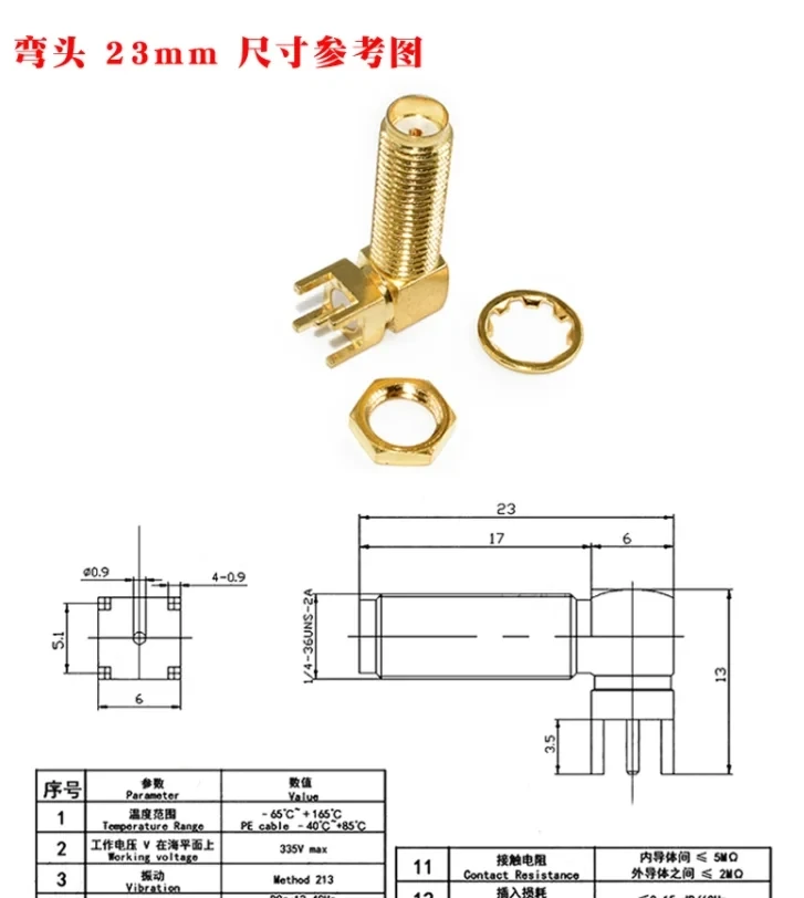 Comprar Adaptador RF piezas, Conector de antena de 90 grados, ángulo recto, 1 SMA-KWE, 14,5 MM, 17MM, 20MM, 23MM