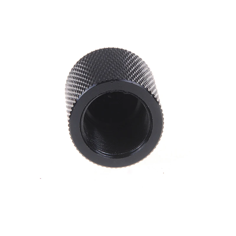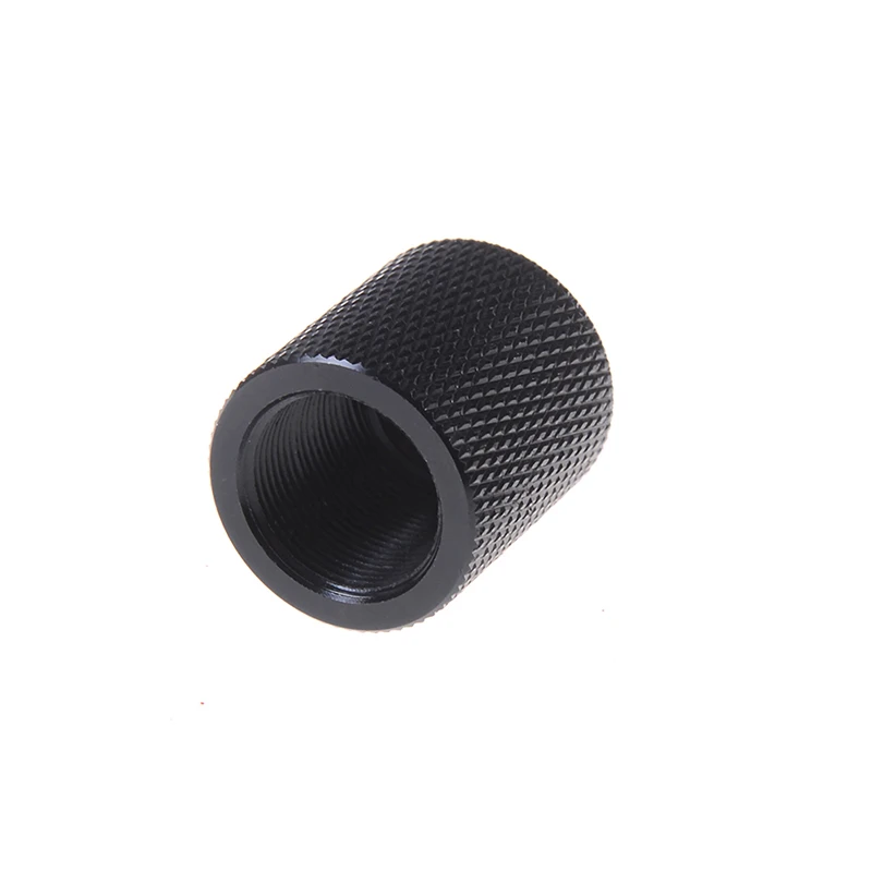 El material es aluminio anodizado negro, calidad muy buena y parte útil. Profundidad del orificio hembra de 5/8"-27=16 mm.
