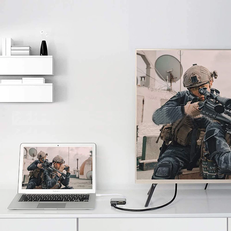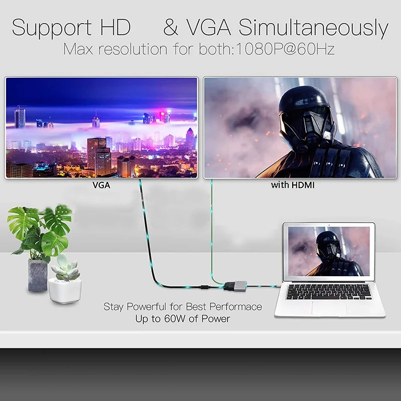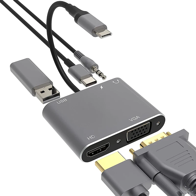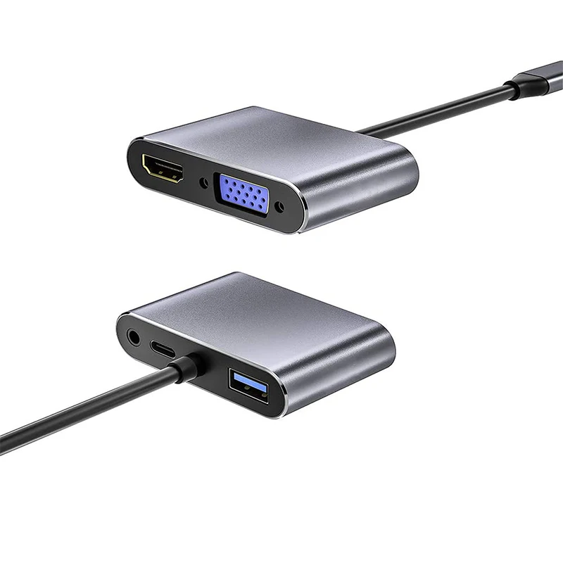 5 En 1 HUB USB 3,0 Tipo C a VGA Adaptador de extensión de salida compatible con HDMI 4K 1080P Convertidor de video Universal para computadora portátil Chromebook