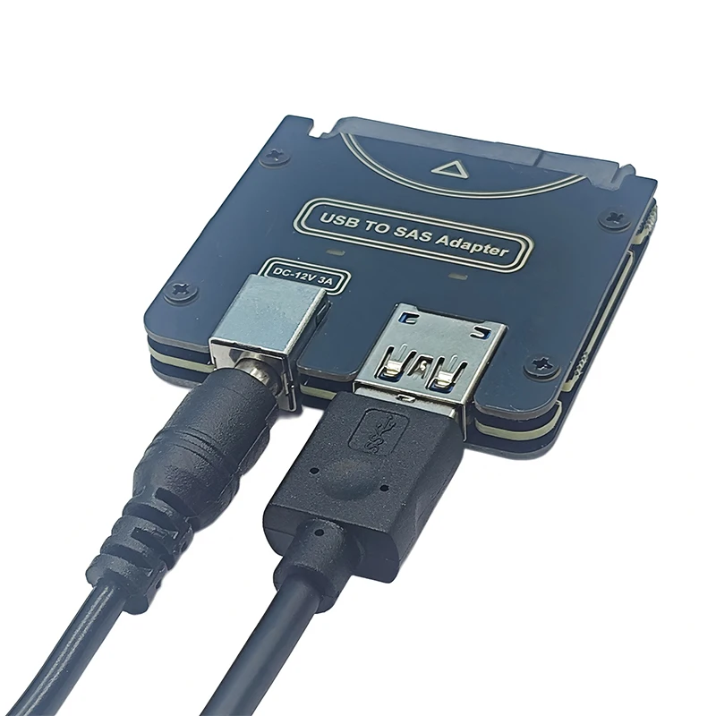 Adaptador SAS a USB con adaptador de fuente de alimentación de 12V/3A Unidad de disco duro SAS 29Pin a USB3.2 GEN1 5Gbps Convertidor Riser para PC portátil