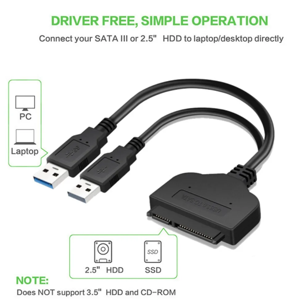 Comprar Adaptador SATA a USB 3,0, Cable USB a Sata, compatible con disco duro SSD HDD externo de 2,5 pulgadas, Cable SATA SATA de 7 + 15 pines, hasta 5 Gbps