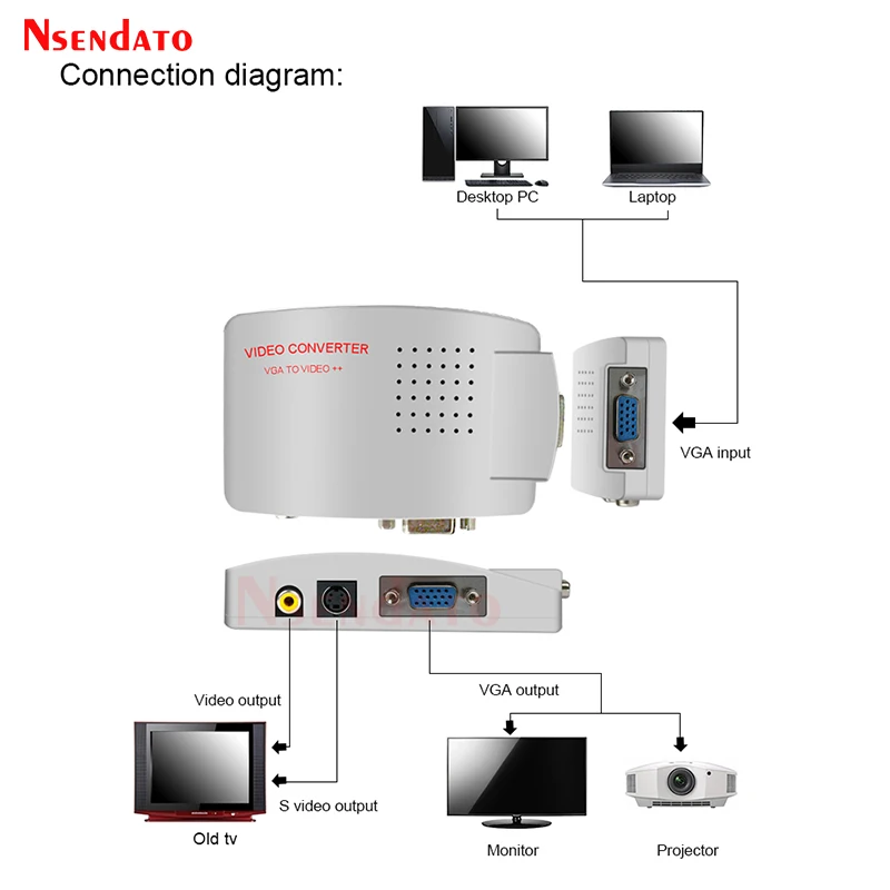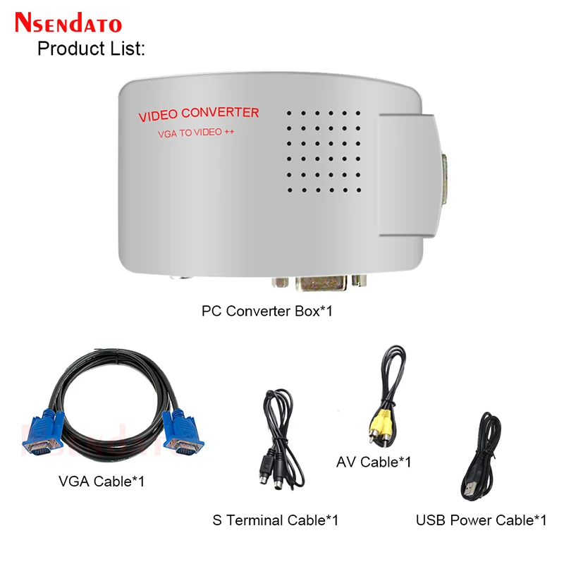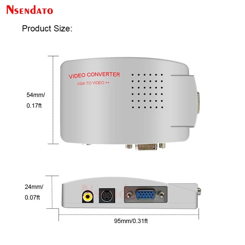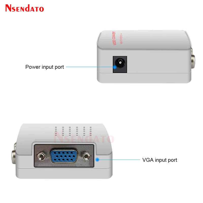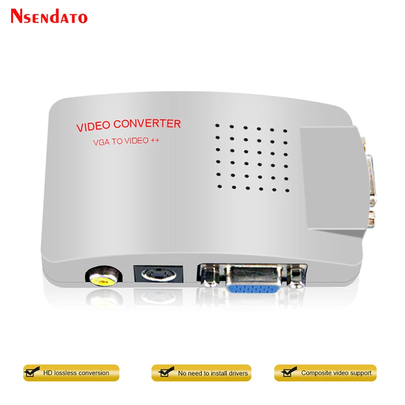 Comprar Adaptador de señal VGA a TV AV RCA, caja de interruptor de vídeo compuesta para ordenador portátil y PC, compatible con s-video RGB, convertidor NTSC/PAL VGA a VGA