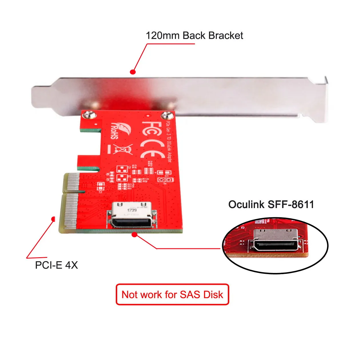 Comprar Adaptador de servidor para PCIe SSD PCI-E 3,0 Express 4,0x4 a Oculink SFF-8612, SFF-8611