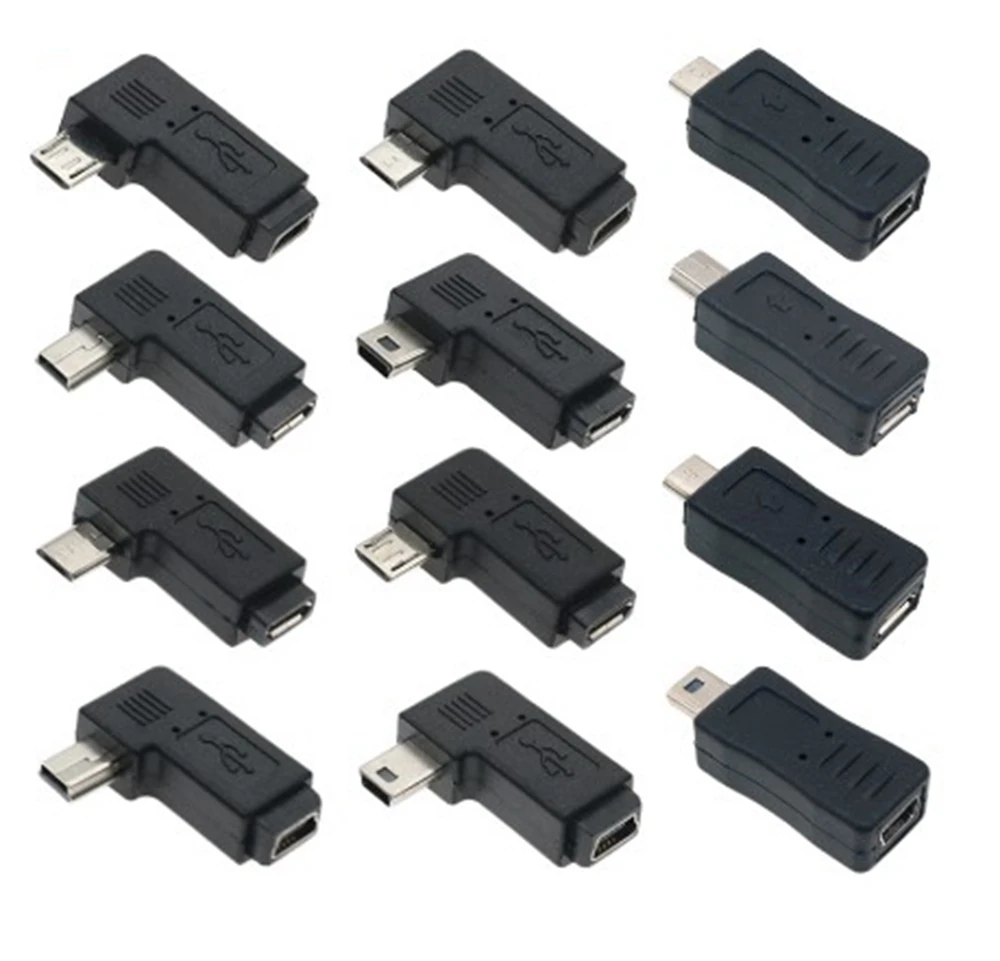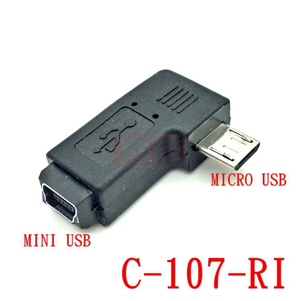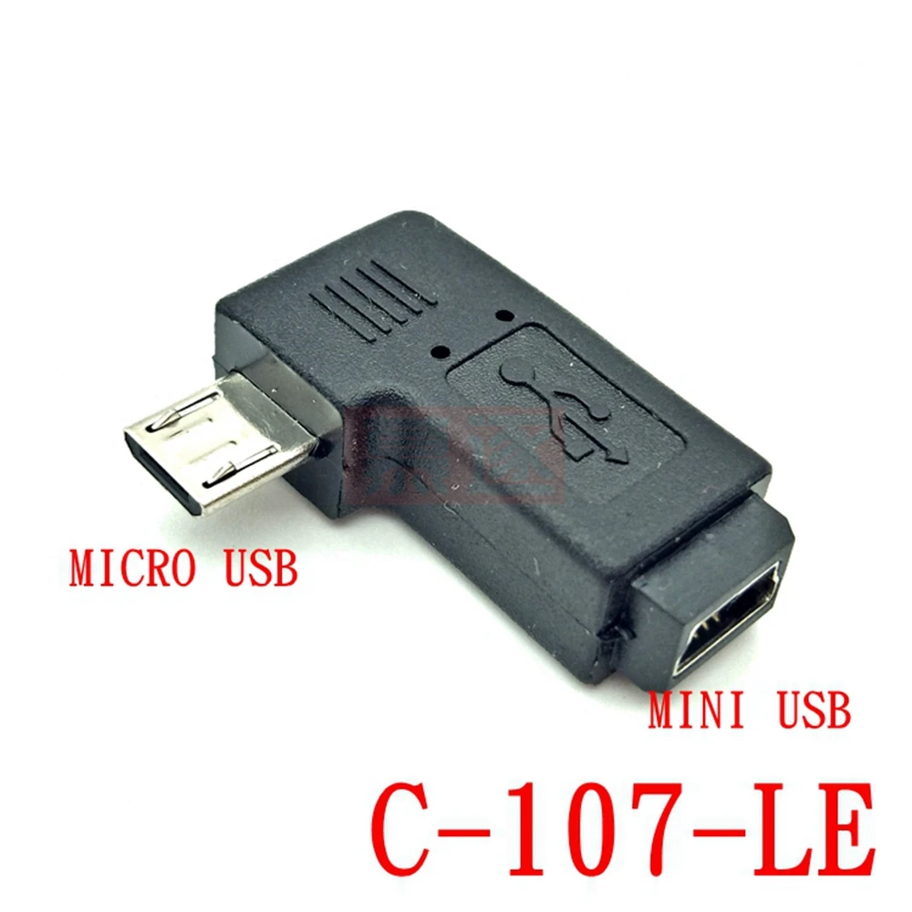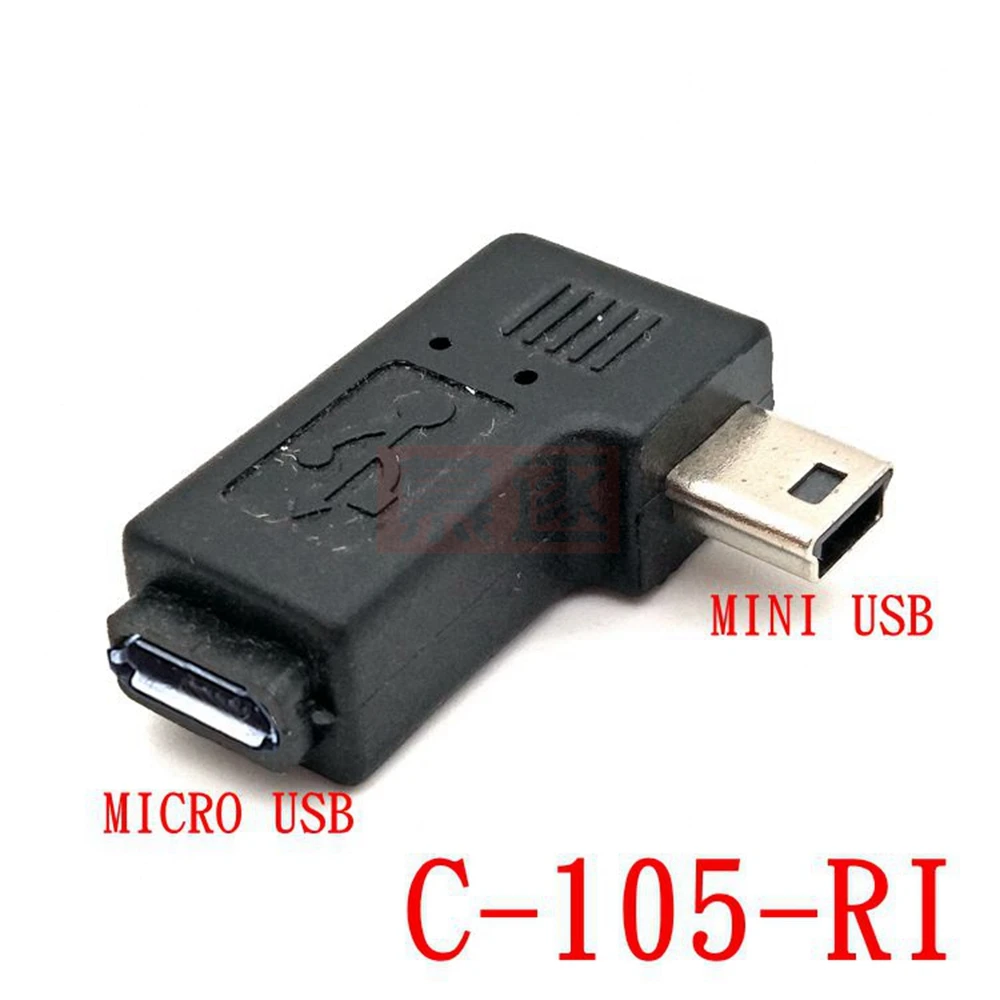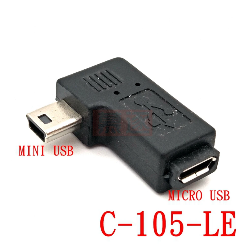 Comprar Adaptador de sincronización de datos, conector Mini USB a Mini USB, ángulo izquierdo y derecho, 90 grados, 5 pines, hembra a Micro USB macho