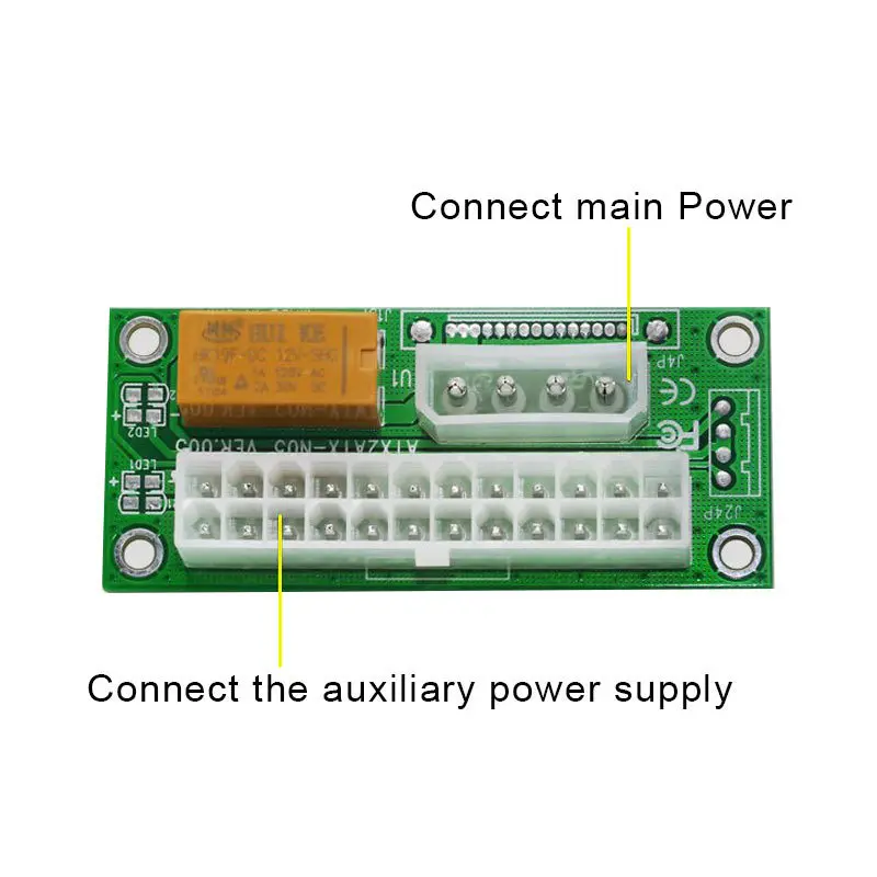 Cuando paga por 5 tarjetas gráficas al mismo tiempo, la fuente de alimentación de la fuente de alimentación no es suficiente. La fuente de alimentación de alta potencia está agotada y el precio es muy caro. Entre ellos, la tarjeta adaptadora ITHOO es útil. A través de esta tarjeta, las dos fuentes de alimentación se pueden encender y apagar al mismo tiempo. La potencia de la tarjeta gráfica se asigna a dos fuentes de alimentación, lo que significa el uso de alta potencia.