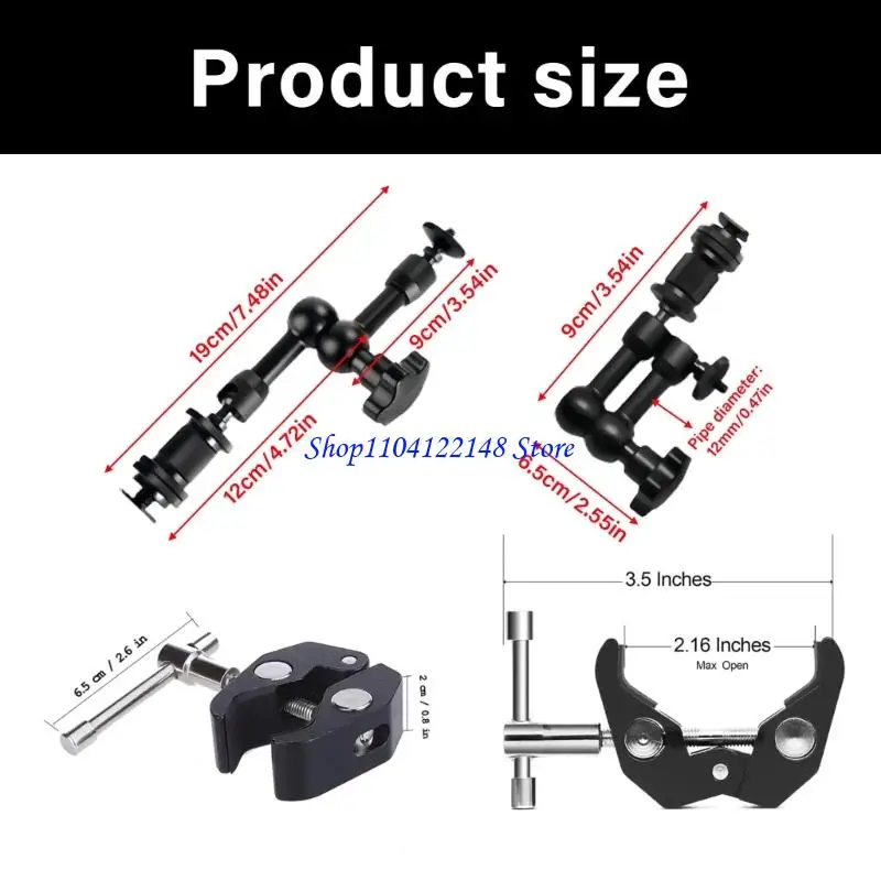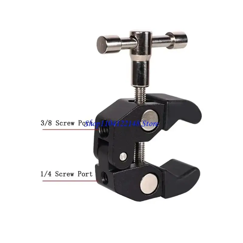Características:OOTDTYAbrazadera de aluminio con orificio roscado de 1/4 de pulgada y 3/8 de pulgada para un montaje seguro de equipos de iluminación y equipos de fotografía.