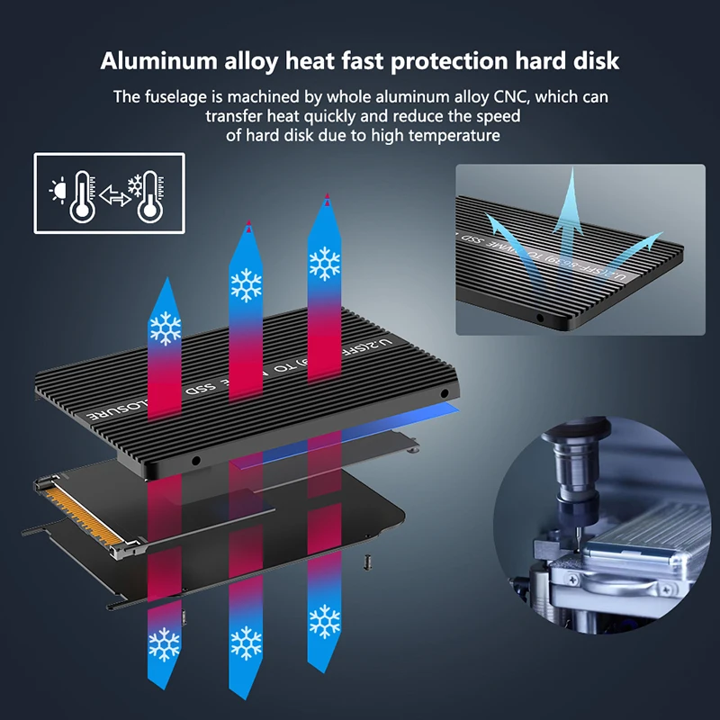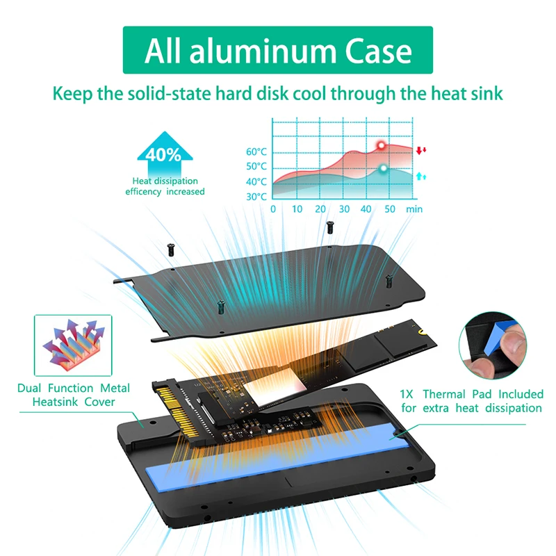 Características del producto1. U.2 () no es SATA y no es compatible con SATA.2. Convierta el módulo M.2 NVMe (PCIe Gen3 x4) a un factor SSD U.2 (2,5) de 7,00 "con un grosor de mm; mismo tamaño estándar, ubicación de interfaz U.2 y ubicaciones de orificios de montaje que la unidad U.23. Diseño del convertidor para adaptarse a cualquier plano posterior U.2 que permita el montaje de U.2 2,5 ”SSD y Mobile Rack; Carcasa de aluminio completa para una excelente disipación del calor; Red como aleta y uso de almohadilla térmica para la gestión del calor4. Admite intercambio en caliente (el controlador de host U.2 debe admitir intercambio en caliente), solo admite longitud M.2 NVMe de 2280.5. Orificios de montaje, 4 en la parte inferior, dos en cada lado como el estándar U.2 2,5 ”SSD factor de forma; se requieren controladores No, compatibilidad Multi-OS: Windows, OS X, Linux1 carcasa NVME SSD a U.2