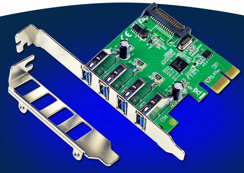 Comprar Adaptador de tarjeta de controlador PCI Express, 4 puertos USB 3,0, 15 Pines, SATA con soporte de perfil bajo