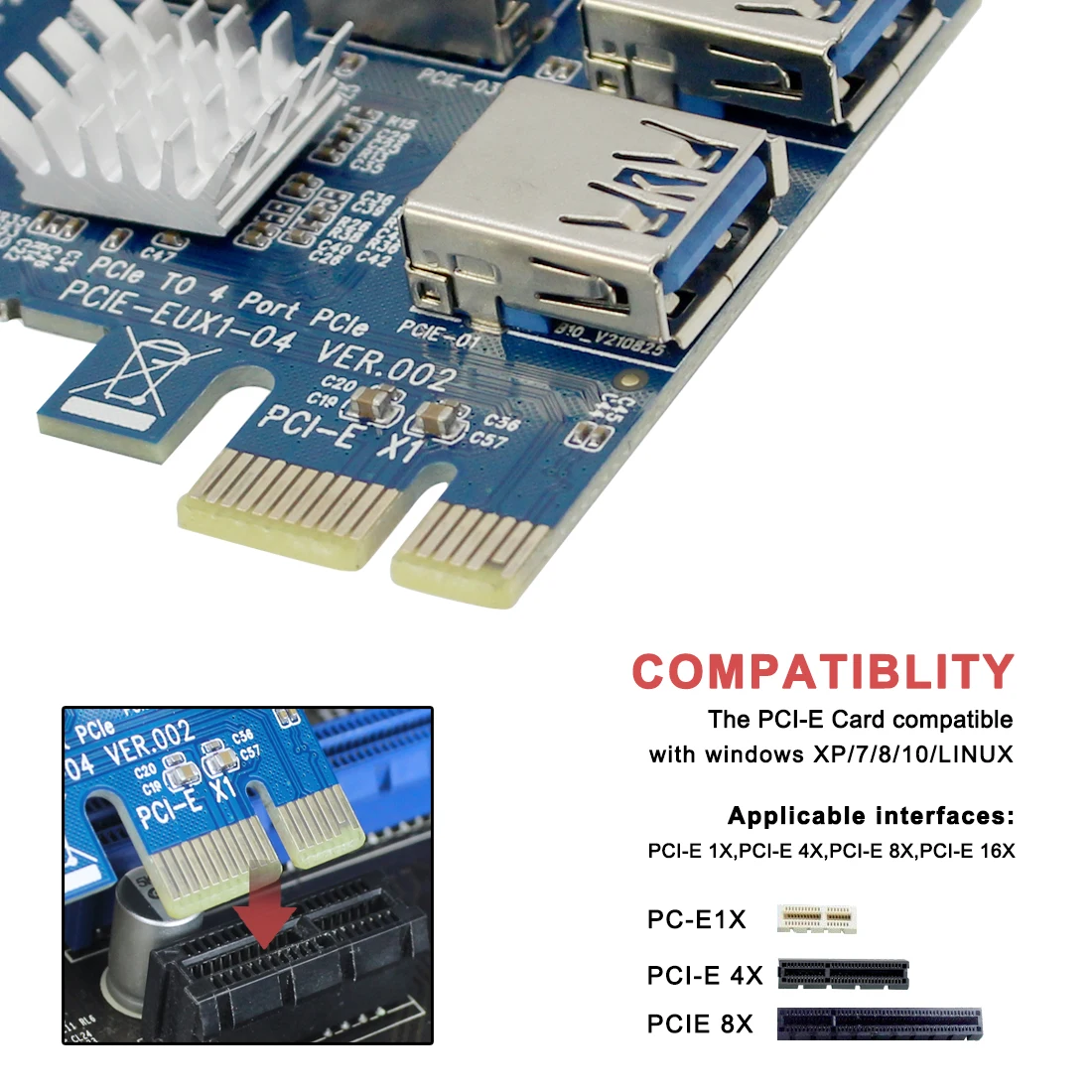 6.Compatible con ranura PCI-E 1x,4x,8x,16x de la placa base.