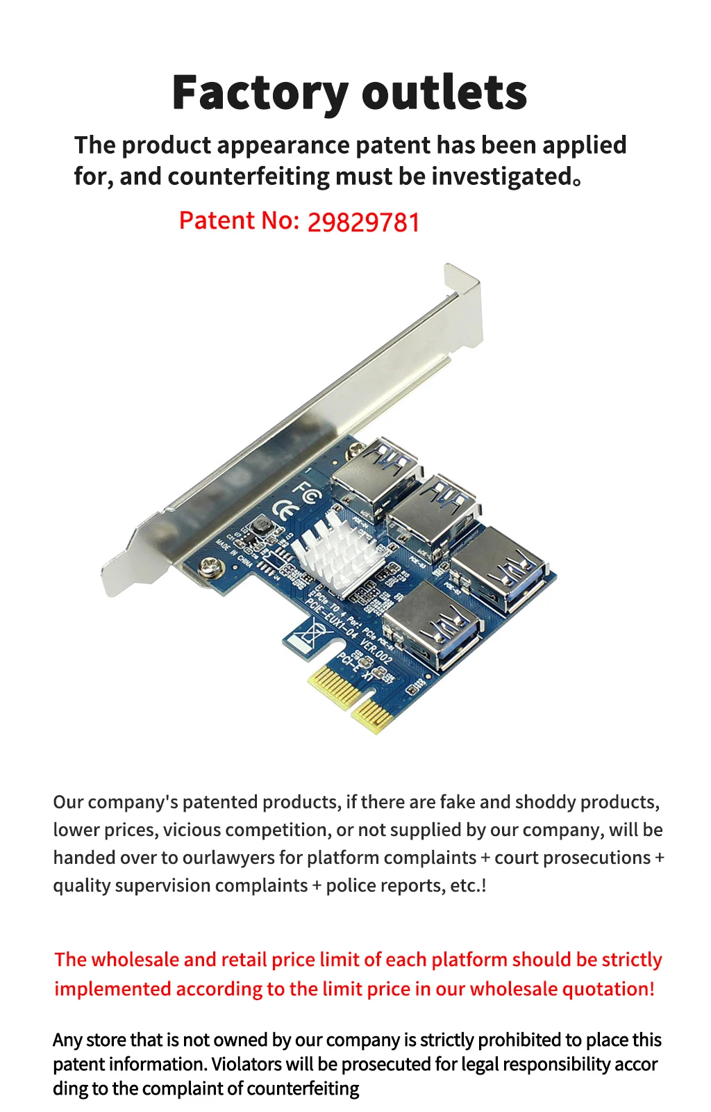 Tarjeta vertical PCI-E de 1 ranura a 4 ranuras 16X con cable USB 3.0 de alta velocidad.
