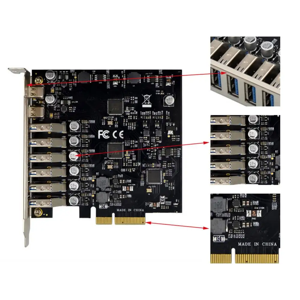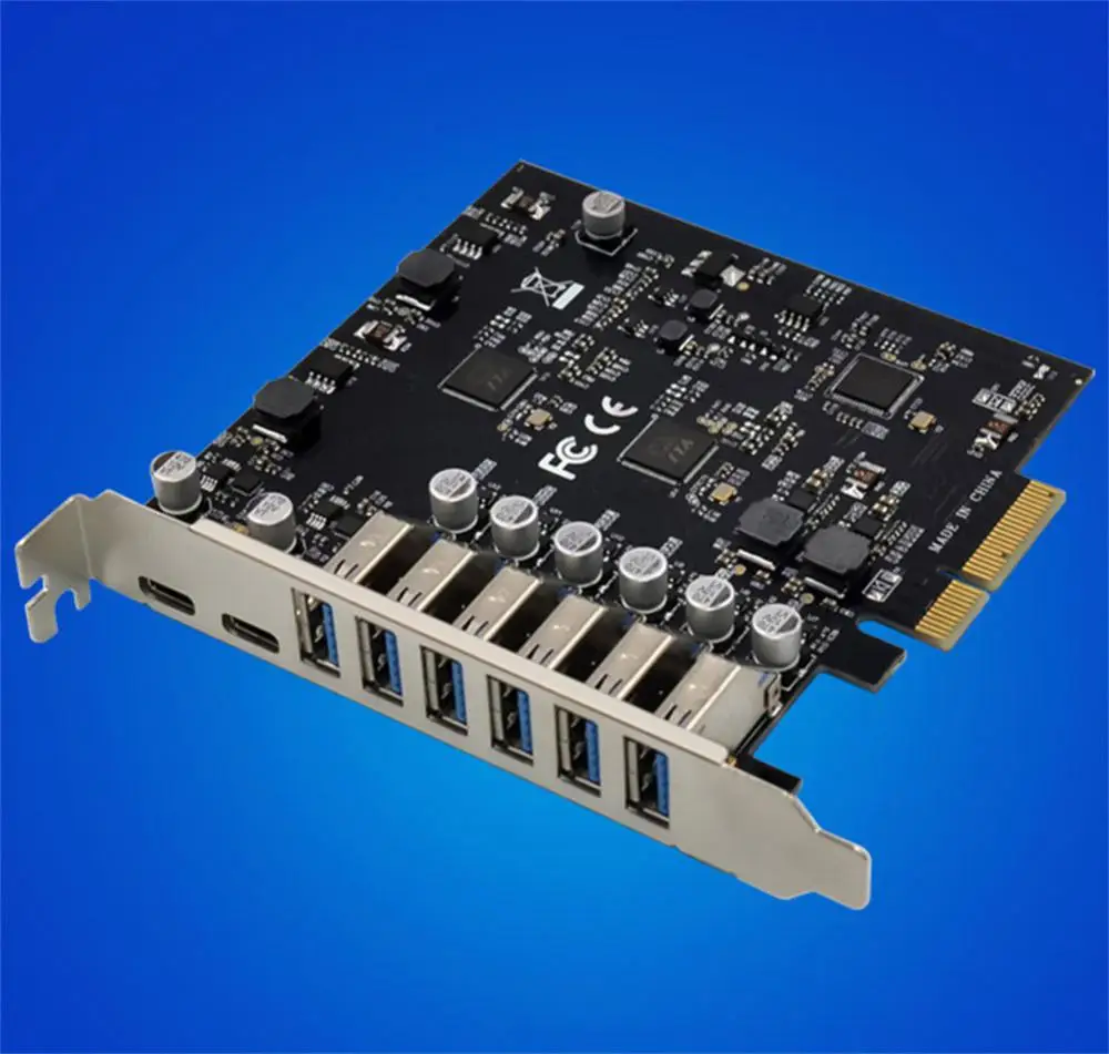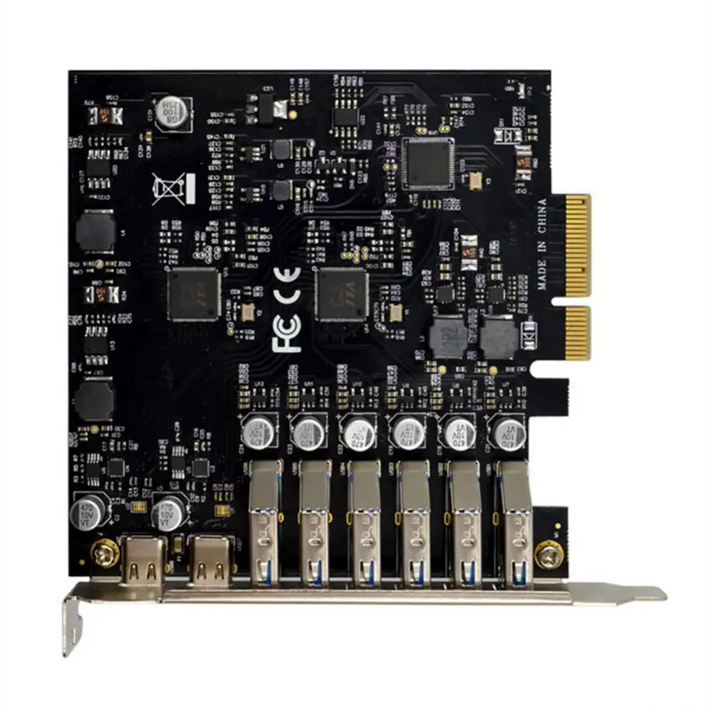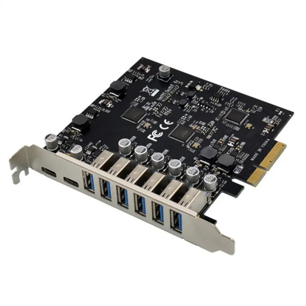 La tarjeta PCIe ASM3142 6A2C USB3.1 de 10Gbps proporciona seis puertos de 1/2 "y dos puertos de 1/2" por chips de combinación ASM3142 y VL822.