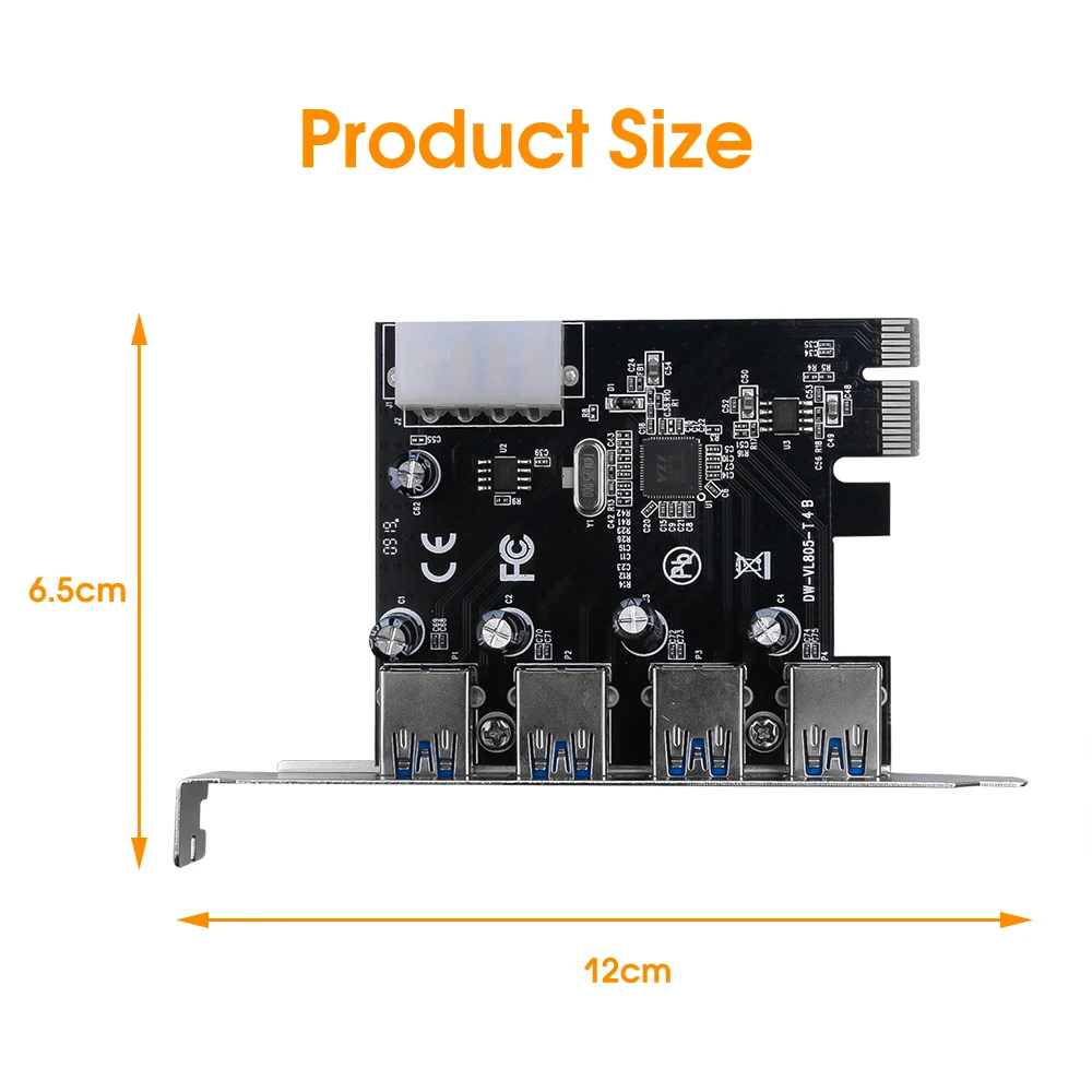 Comprar Adaptador de tarjeta de expansión PCI-E a USB 3,0, HUB PCI Express de 4 puertos, velocidad de 5 Gbps, USB 3 0, PCI E PCIe Express 1x para escritorio