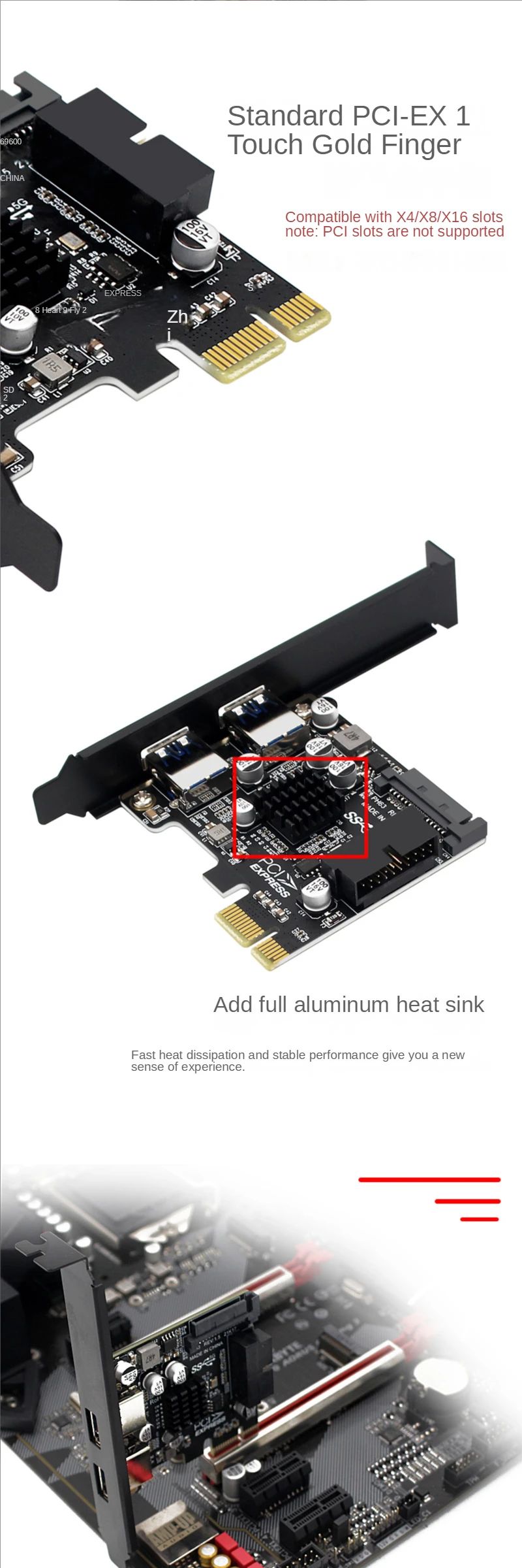 Comprar Adaptador de tarjeta de expansión PCI-E x1 x4 x8 x16 USB 3,0, Hub de 4 puertos USB3.0, cabezal interno de 19/20 Pines, PCI Express a tarjeta adaptadora USB3.0