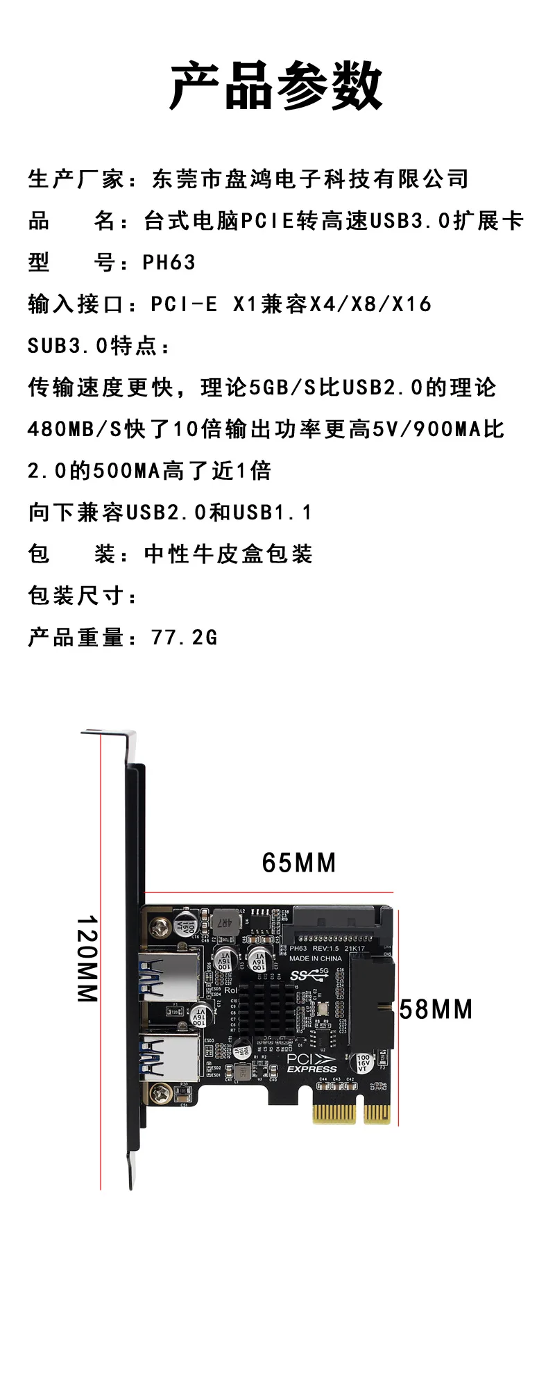 Nombre del producto: tarjeta vertical de alta velocidad de escritorio PCIe a USB3.0