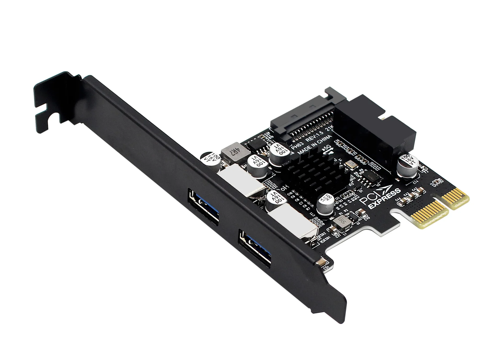 Comprar Adaptador de tarjeta de expansión PCI-E x1 x4 x8 x16 USB 3,0, Hub de 4 puertos USB3.0, cabezal interno de 19/20 Pines, PCI Express a tarjeta adaptadora USB3.0