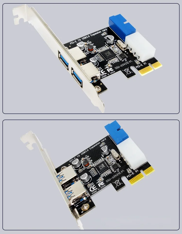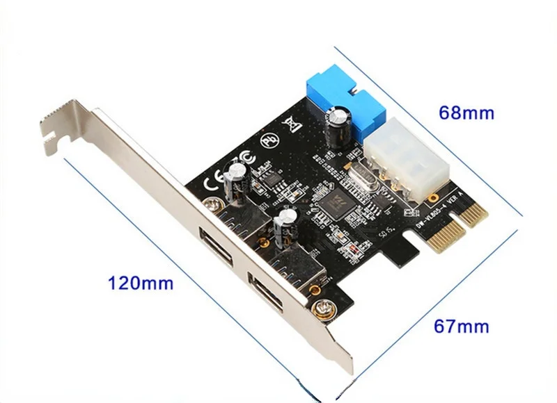 Comprar Adaptador de tarjeta de expansión USB 3,0 PCI-E, concentrador USB 3,0 de 2 puertos, cabezal interno de 19 pines y 19 pines, tarjeta adaptadora USB 3 a PCIE PCI express