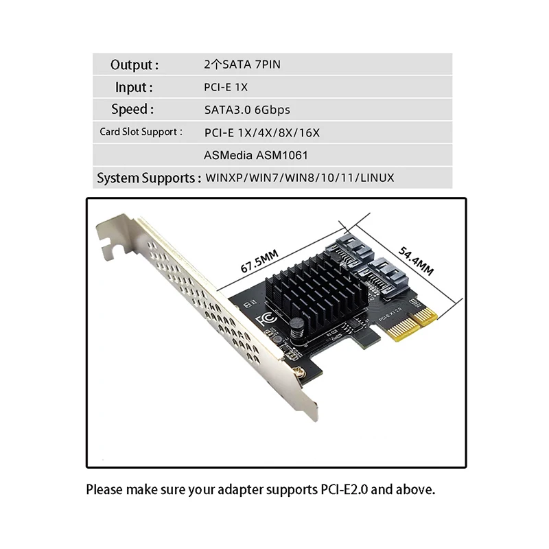 Comprar Adaptador de tarjeta de extensión PCI-E a Sata 3,0, convertidor de 2 puertos 6G, IPFS HDD ASM1061, Control maestro, adaptador de expansión