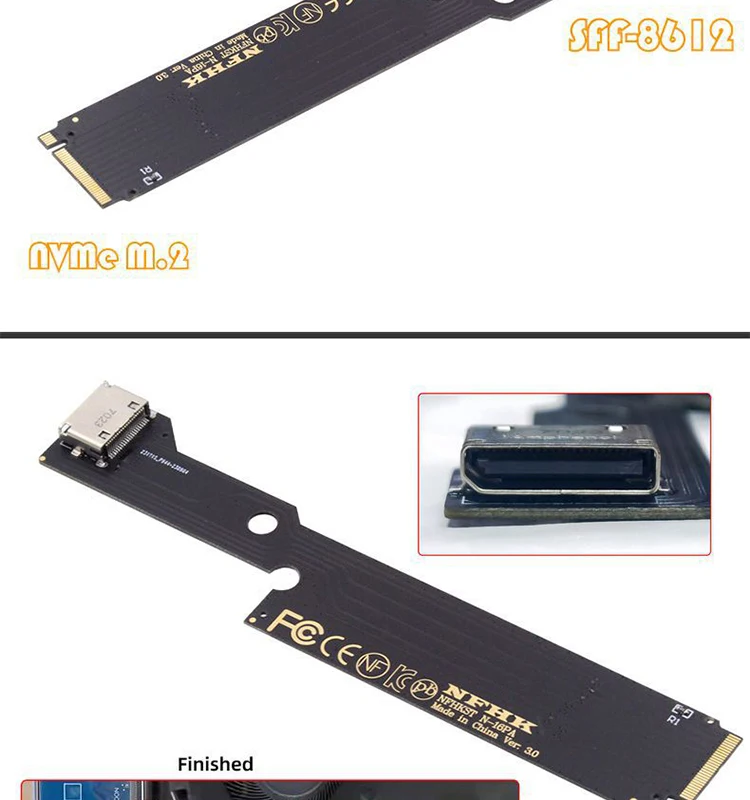 El cable de señal del disco duro se conecta directamente a la ranura SSD PCIe NVMe M.2 NGFF de su máquina, la conversión no requiere pasar por un chip y no hay restricciones en el rendimiento del disco duro, etc.
