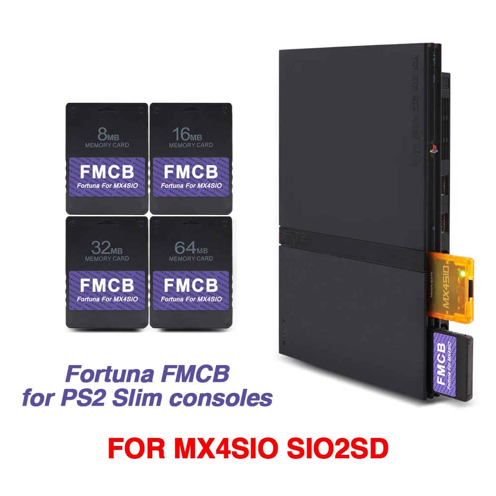 Adaptador de tarjeta SD MX4SIO SIO2SD para PS2 Playstation 2 + tarjeta Fortuna FMCB para consolas PS2 Slim + tarjeta de juego