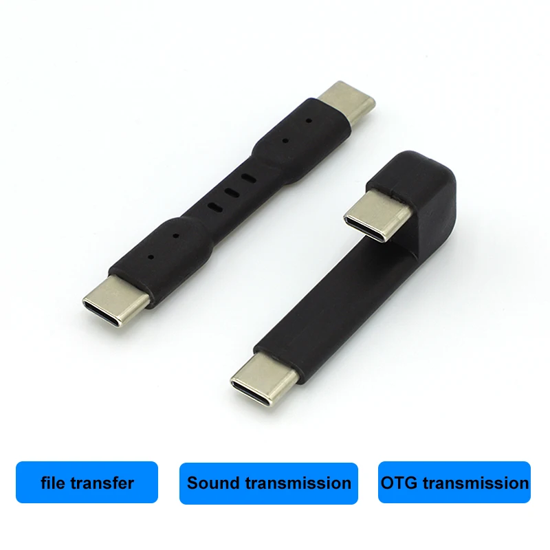 Codo de cabeza recta Cable de datos tipo C a tipo C, adaptador de tarjeta de sonido con función OTG, función de transferencia de archivos, adaptador de esquina de sonido, cable de carga corto macho a macho con función completa, cable de audio