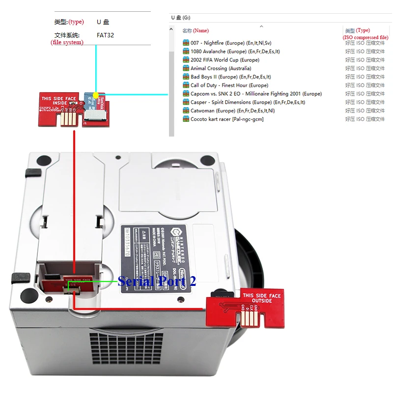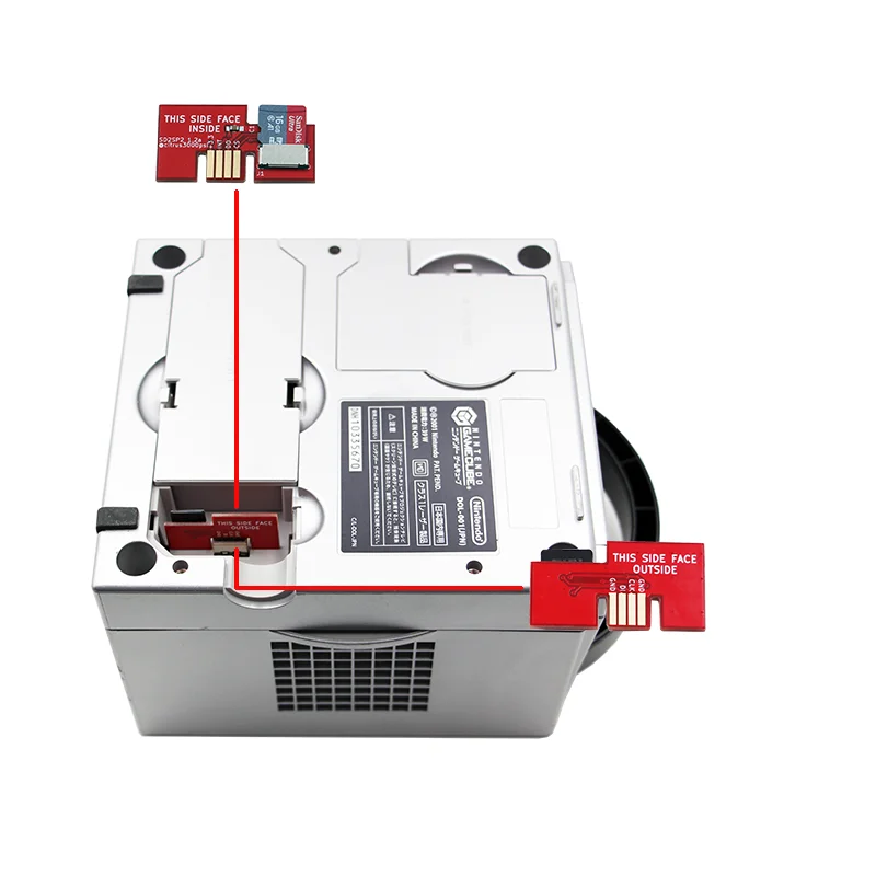 Swiss es compatible con el adaptador Gamecube Micro SD a Serial Port 2 SD2SP2.También puede utilizar un adaptador de tarjeta de memoria SD.