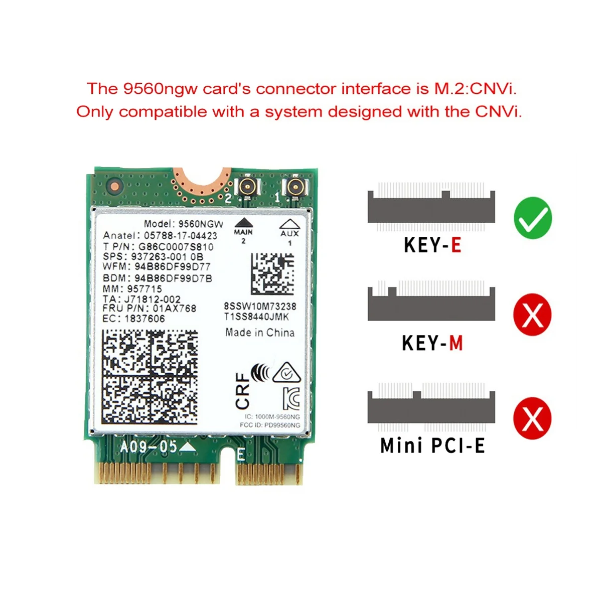 Comprar Adaptador de tarjeta WiFi 9560NGW, antena inalámbrica de 1730Mbps, CA 9560, 2,4G + 5G, BT 5,0, 802.11Ac, M.2, CNVI, 9560NGW, B
