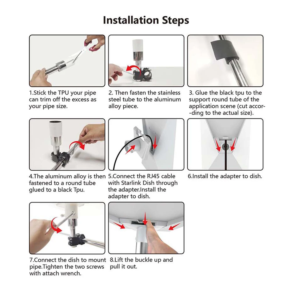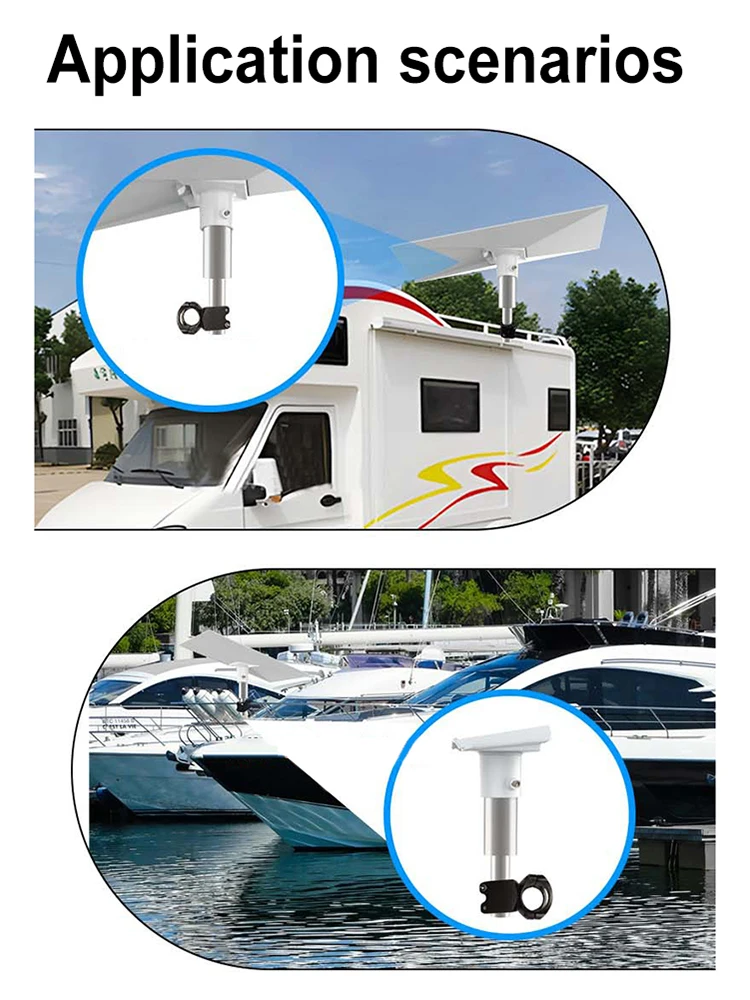 Característica:1. Material Premium:Este soporte de techo de montaje en escalera de RV está hecho de materiales resistentes ASA impermeables UV para exteriores, lo que garantiza durabilidad y fiabilidad. Proporciona una plataforma estable para sus componentes de Internet por satélite, lo que garantiza un uso a largo plazo.