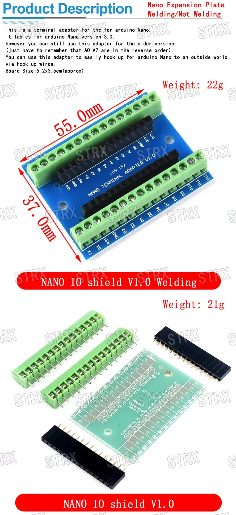 Comprar Adaptador de Terminal de controlador NANO V3.0, placa de expansión, escudo prototipo y placa de expansión multiusos UNO para Arduino