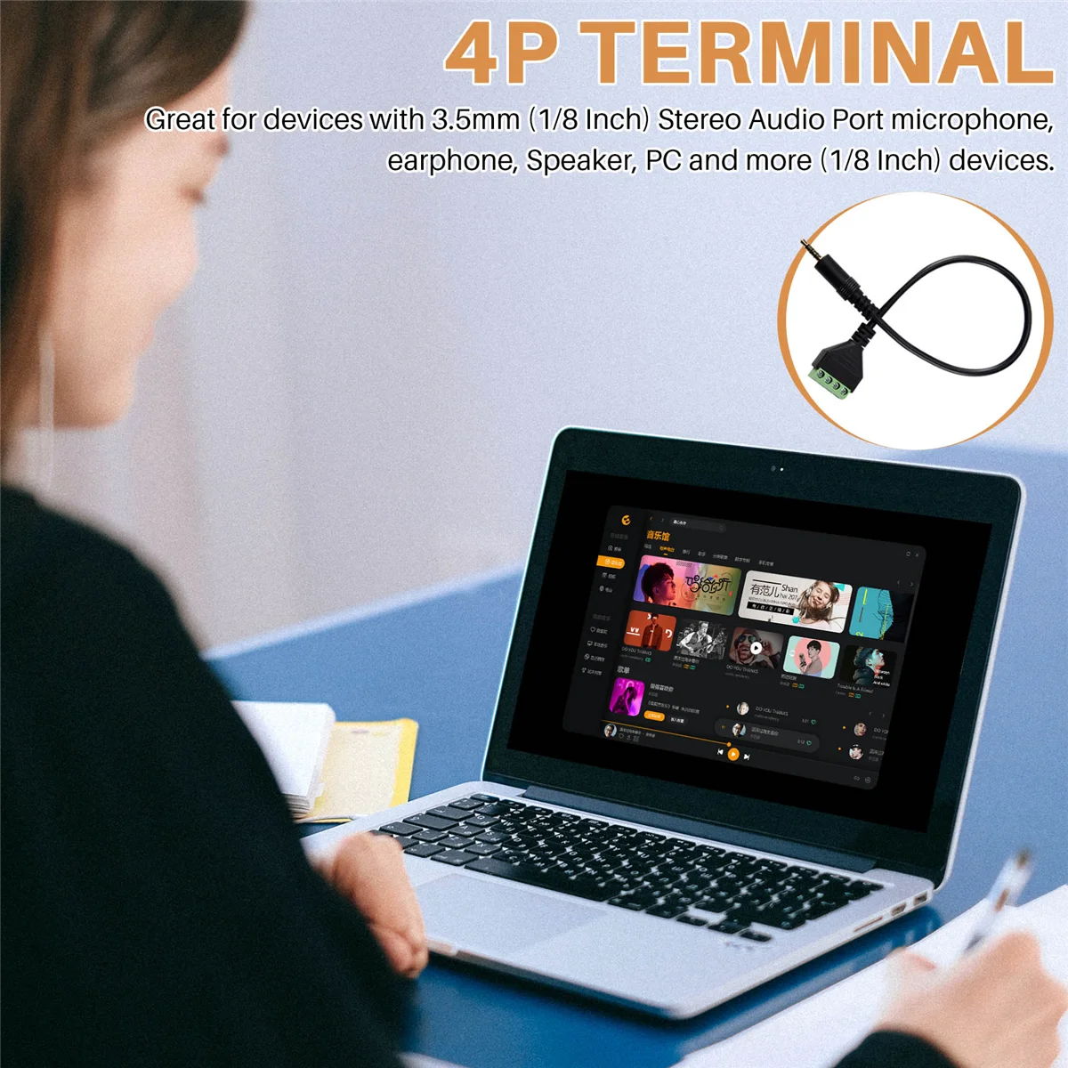 4. El cable del altavoz al cable adaptador de 3,5mm no requiere soldadura, es fácil de usar, solo requiere un destornillador y un Pelacables para terminar los cables de audio estéreo TRRS de 3,5mm (1/8 pulgadas), ahorra tiempo y molestias a los instaladores.