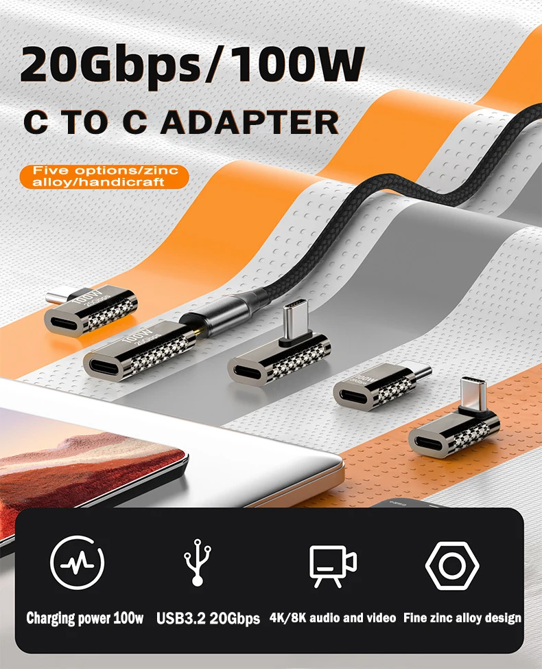 Comprar Adaptador tipo C 4,0 a USB tipo C 100W Super carga convertidor de transmisión alta de 20Gbps compatible con Audio y video 4K/8K para PC y tableta
