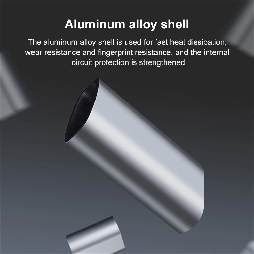 3. [Carcasa de aleación de aluminio] La carcasa de aleación de aluminio se utiliza para una rápida disipación del calor, resistencia al desgaste y resistencia a las huellas dactilares, al tiempo que fortalece la protección del circuito interno