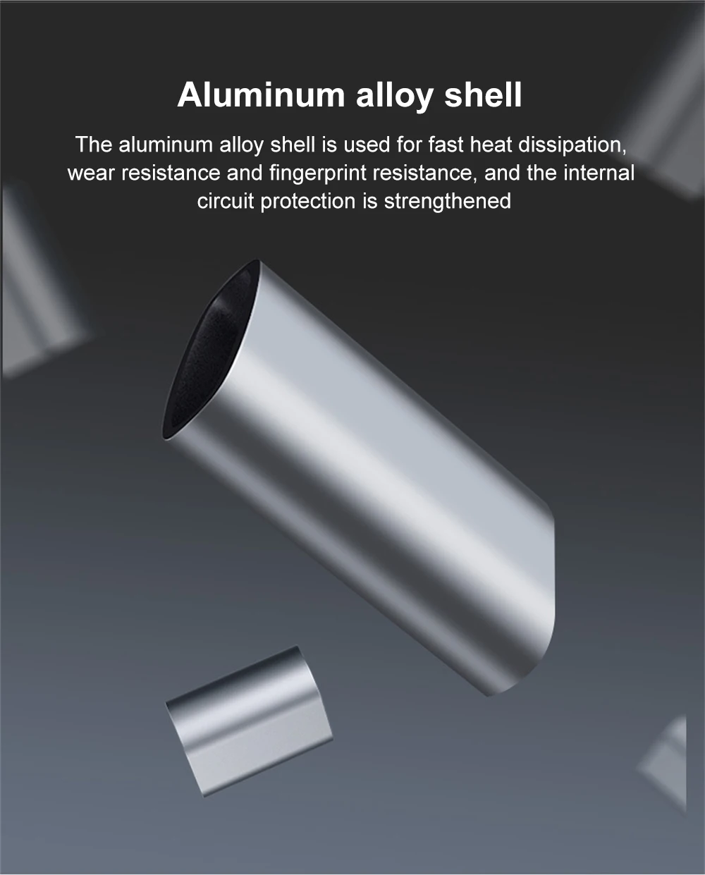3. [Carcasa de aleación de aluminio] La carcasa de aleación de aluminio se utiliza para una rápida disipación del calor, resistencia al desgaste y resistencia a las huellas dactilares, al tiempo que fortalece la protección del circuito interno