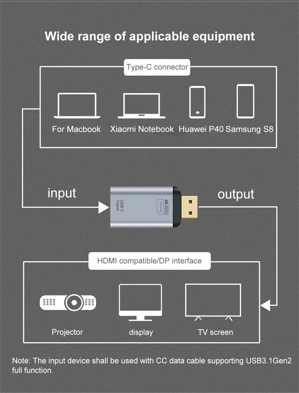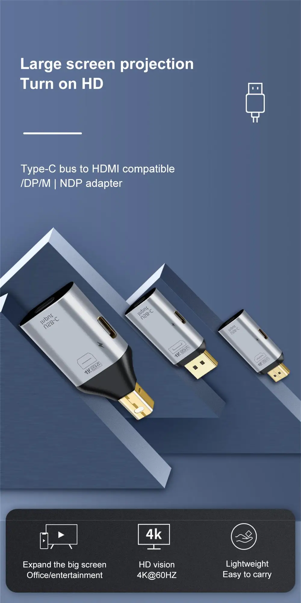 Adaptador 4K tipo C a DP/compatible con HDMI/Mini DP Cable tipo C A Adaptador Thunderbolt 3 para adaptadores de teléfono portátil tipo C