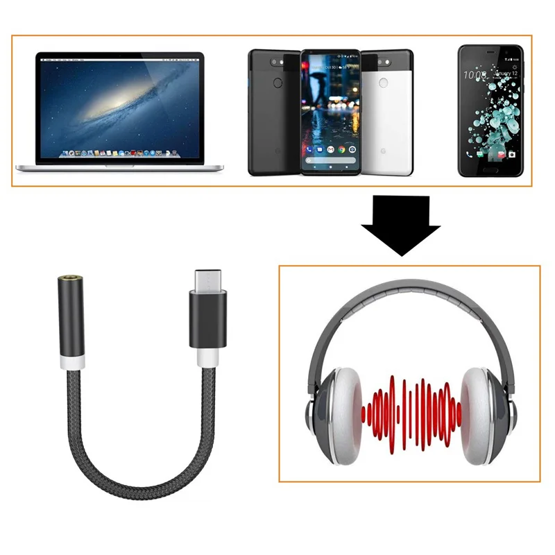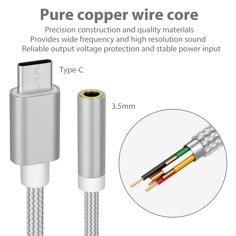 Adaptador tipo C a 3,5mm, adaptador de conector auxiliar para auriculares, Cable de Audio Usb C a 3,5mm para Xiaomi Mi iPad Pro Samsung Galaxy