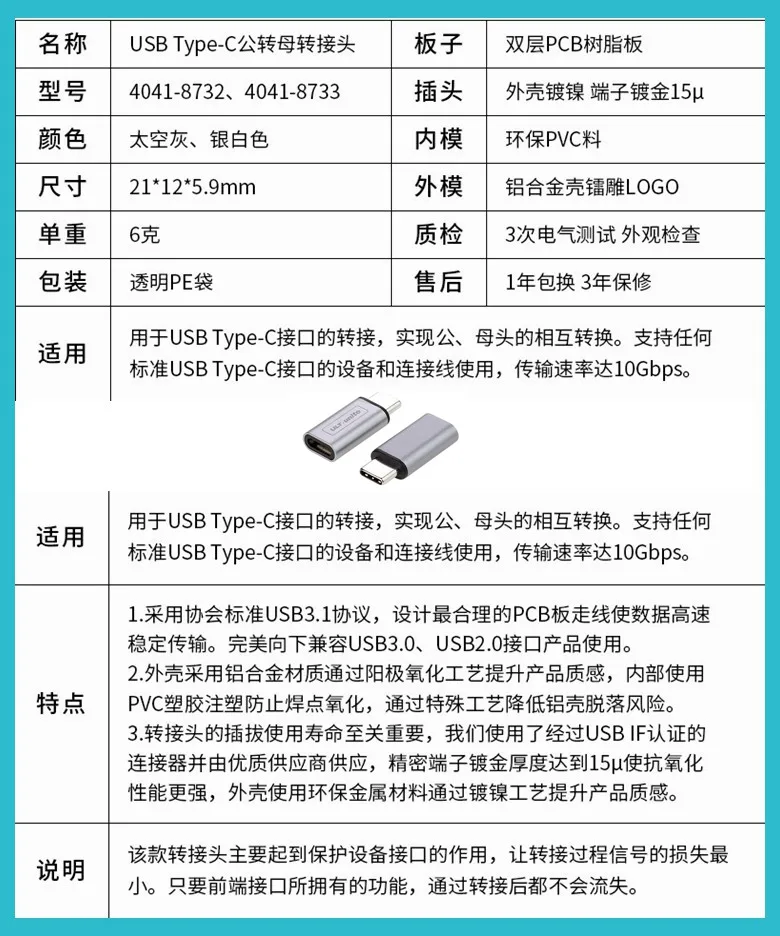 Características: Material: aleación de aluminio Compatibilidad: Iluminación hembra a macho tipo c Para adaptador tipo c Color: plateado/gris Función: transmisión de datos + carga del dispositivo Ventaja: 1. El adaptador también será compatible con el cable de iPhone mediante el uso de este convertidor. No es necesario comprar más y más cables. Ligero pero duradero, fácil de transportar 2. Compatible: Para Samsung note7 C9 Pro Para Xiaomi 6 8 9max2 mix note2 5s Para Huawei P10 P10+ P9 Mate9 Para LG Para Lenovo Para Nokia Para imac 2017 para tabletas Sansumg Galaxy Tab S3, etc. 3. Para usar: simplemente conecte un cable de iluminación estándar al conector hembra de este adaptador, luego conecte el conector macho de este adaptador al puerto de su dispositivo Android (Tipo-C). Luego podrá utilizar un cargador de pared estándar para cargar; o opte por transferir o sincronizar datos desde su dispositivo a un dispositivo tipo C. 4. Carga y sincronización a alta velocidad. Sincroniza y carga a velocidades rápidas en tus dispositivos. Nuestros equipos tecnológicos realizan miles de pruebas para garantizar el 100% de seguridad de su dispositivo
